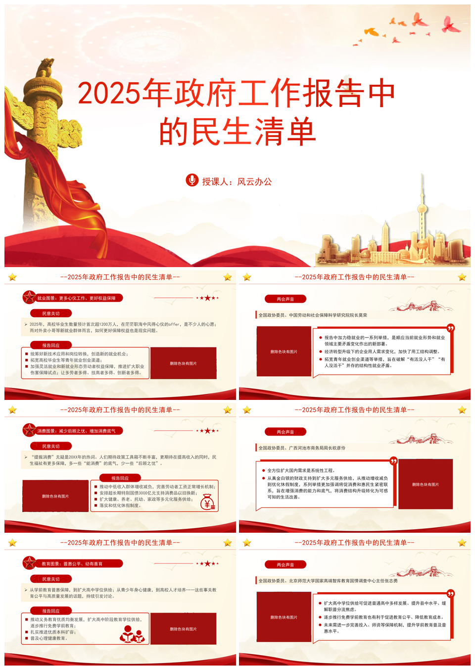 2025可编辑红白两会政府报告PPT模板