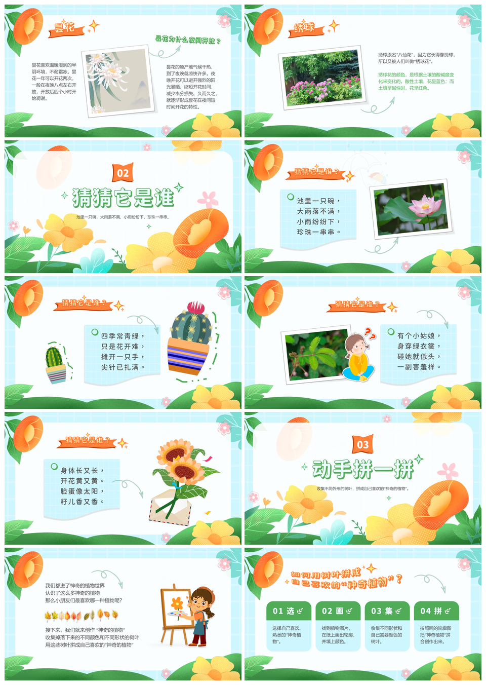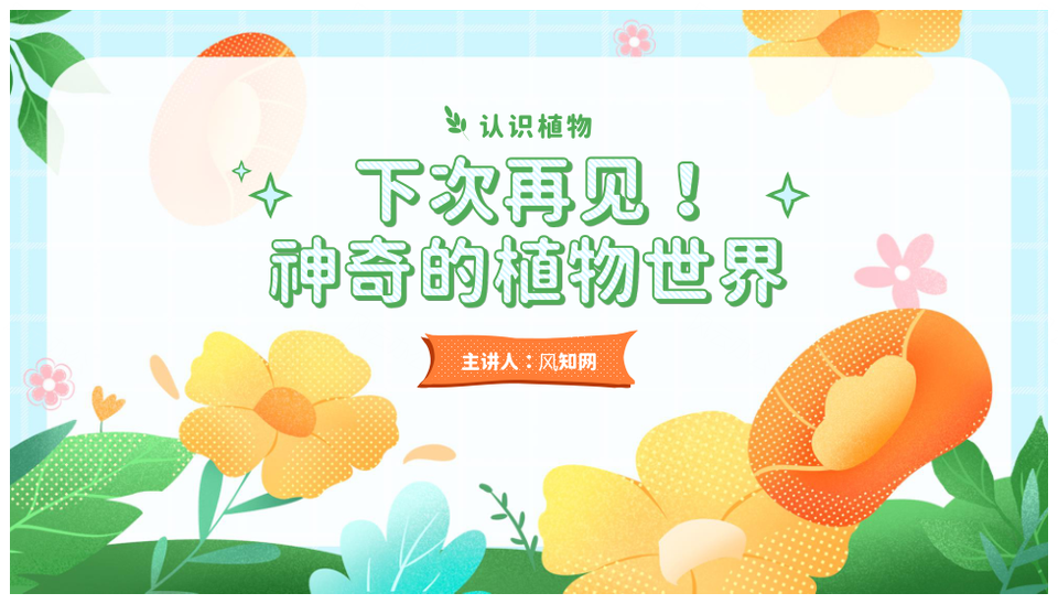 这是一张2025蓝绿清新神奇植物儿童科普培训PPT模板,包含2025、蓝绿、清新、神奇植物、儿童、科普、培训等主题内容,也可用作蓝绿清新神奇植物、植物儿童科普培训、2025儿童科普培训、神奇植物科普培训、清新神奇植物科普、蓝绿植物儿童科普、蓝绿清新儿童科普、儿童科普培训、神奇植物科普、2025儿童科普、清新神奇植物、植物儿童科普、植物科普培训、蓝绿儿童科普、清新儿童科普等PPT场景使用。 风云办公提供的2025蓝绿清新神奇植物儿童科普培训PPT模板,下载格式为pptx,一共19页,作品中文字及图均可以修改和编辑,图片更改请在作品中右键图片并更换,文字修改请直接点击文字进行修改。
