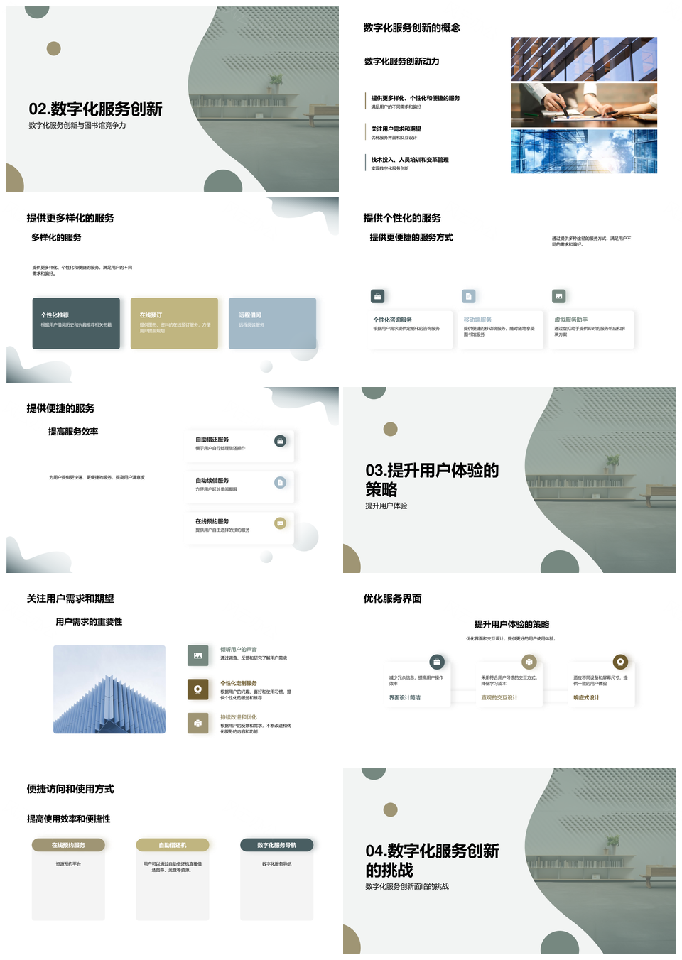 这是一张图书馆数字化创新驱动多样个性化服务体验PPT模板,包含图书馆、数字化、创新、驱动、多样、个性化、服务、体验等主题内容,也可用作图书馆数字化创新驱动、数字化创新驱动多样、创新驱动多样个性化、驱动多样个性化服务、多样个性化服务体验、图书馆数字化创新、数字化创新驱动、创新驱动多样、驱动多样个性化、多样个性化服务、个性化服务体验、图书馆数字化、数字化创新、创新驱动、驱动多样等PPT场景使用。 风云办公提供的图书馆数字化创新驱动多样个性化服务体验PPT模板,下载格式为pptx,一共28页,作品中文字及图均可以修改和编辑,图片更改请在作品中右键图片并更换,文字修改请直接点击文字进行修改。