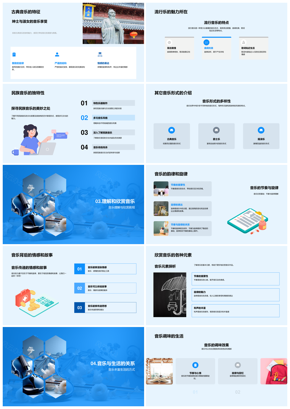 2025音乐知识讲解定义种类发展教育古典流行民族PPT模板