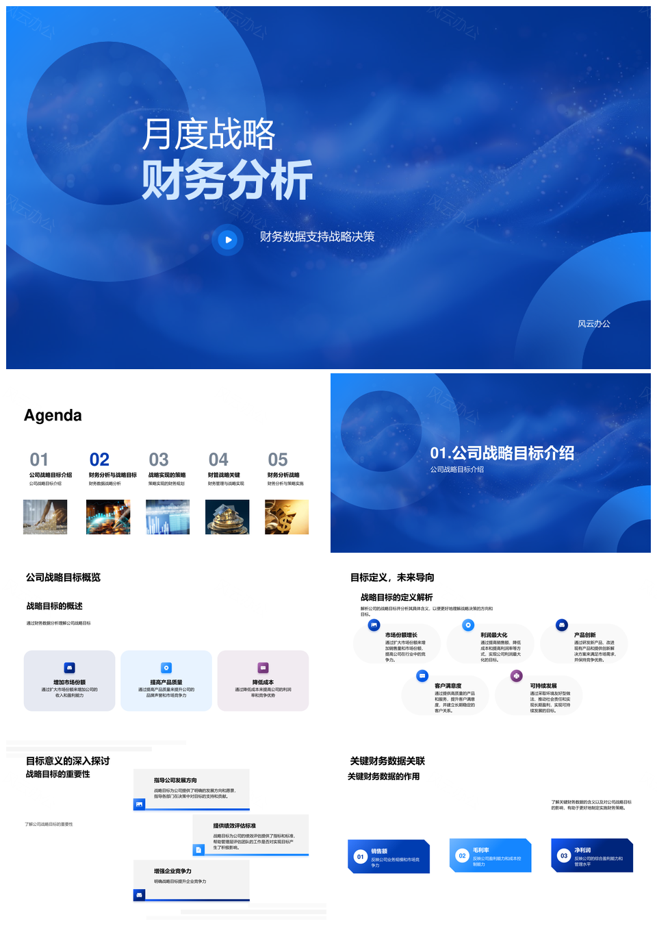 风云办公提供的战略财务数据分析驱动公司决策目标PPT模板,下载格式为pptx,一共33页,作品中文字及图均可以修改和编辑,图片更改请在作品中右键图片并更换,文字修改请直接点击文字进行修改。