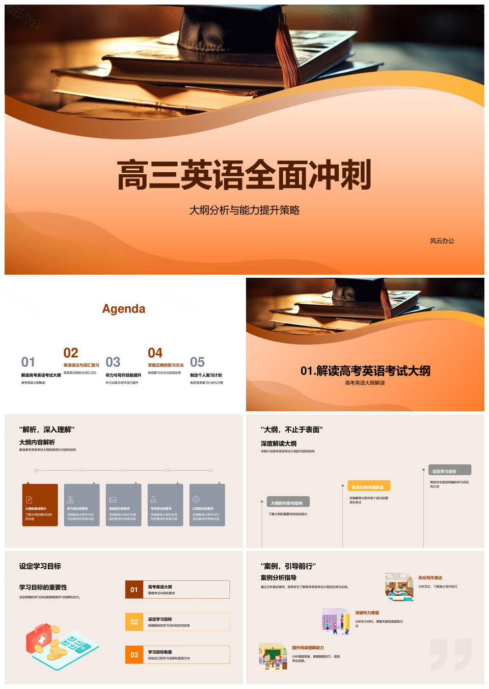 风云办公提供的高三英语冲刺考纲语法词汇记忆策略PPT模板,下载格式为pptx,一共28页,作品中文字及图均可以修改和编辑,图片更改请在作品中右键图片并更换,文字修改请直接点击文字进行修改。