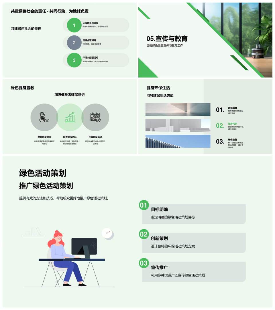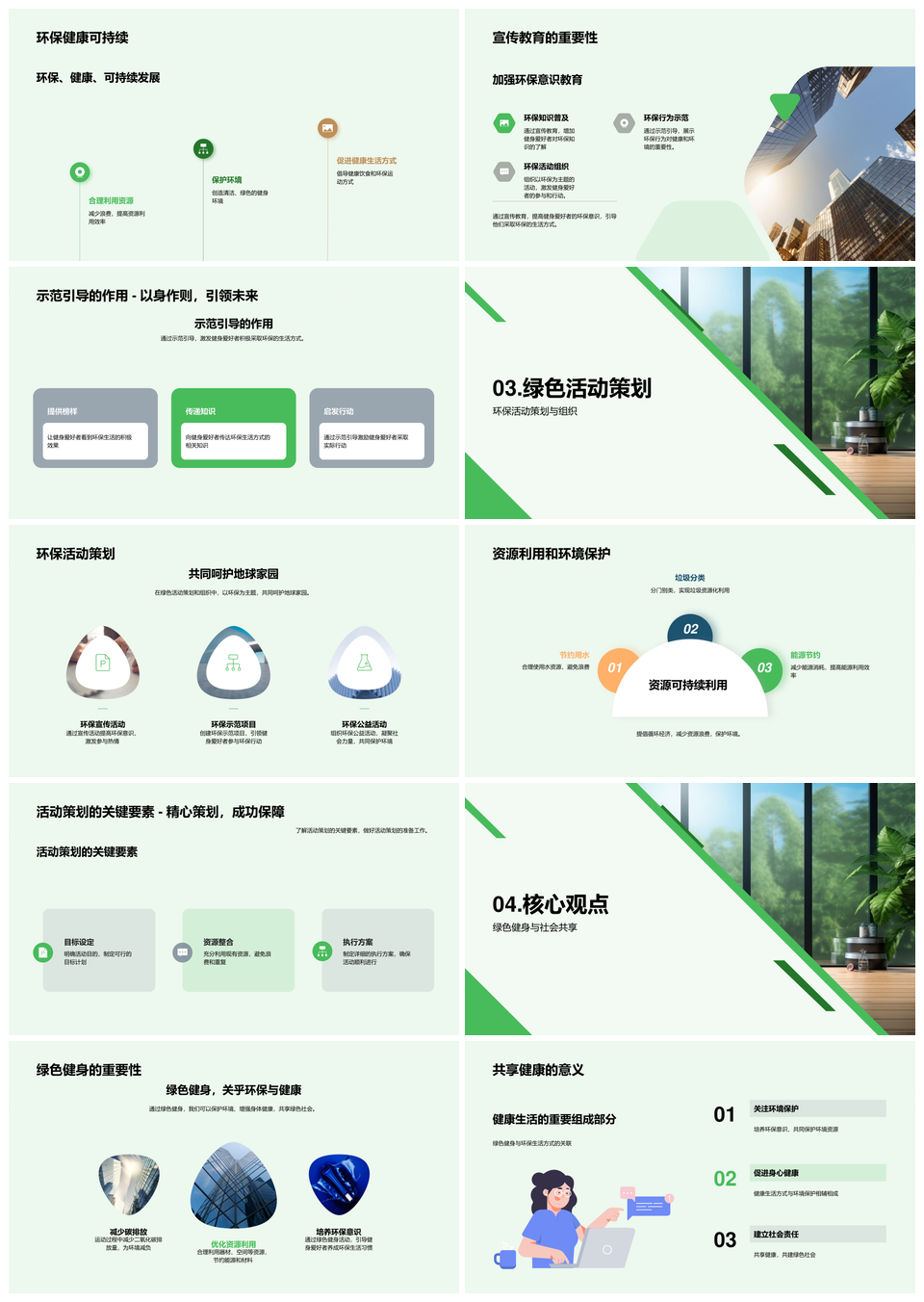 这是一张绿色活动共享健康专家引领健身环保生活PPT模板,包含绿色活动、共享、健康、专家、引领、健身、环保、生活等主题内容,也可用作绿色活动共享健康、绿色活动共享健康专家、活动共享健康专家引领、共享健康专家引领健身、健康专家引领健身环保、专家引领健身环保生活、绿色活动共享健康专家引领、活动共享健康专家引领健身、共享健康专家引领健身环保、健康专家引领健身环保生活、绿色活动共享、共享健康专家、专家引领健身、健身环保生活、环保生活健身等PPT场景使用。 风云办公提供的绿色活动共享健康专家引领健身环保生活PPT模板,下载格式为pptx,一共23页,作品中文字及图均可以修改和编辑,图片更改请在作品中右键图片并更换,文字修改请直接点击文字进行修改。