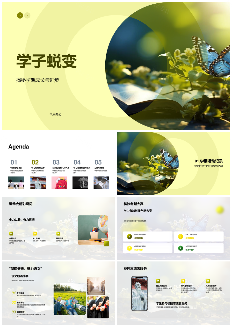 学子蜕变学期成长进步活动记录成绩生活人际学习书PPT模板推荐