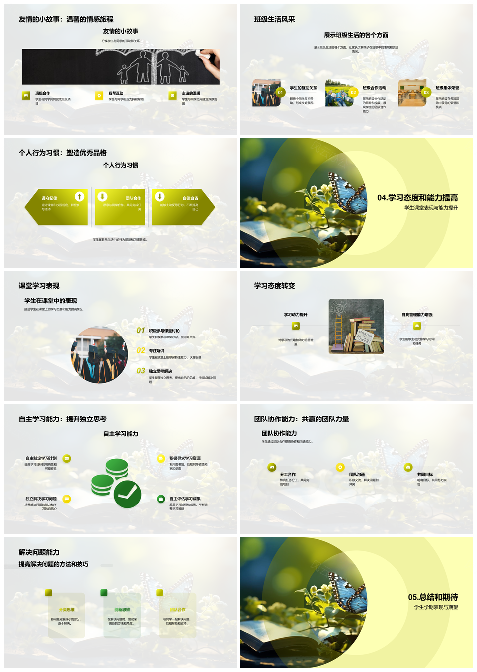 学期成长班级汇报友情学习记录PPT模板