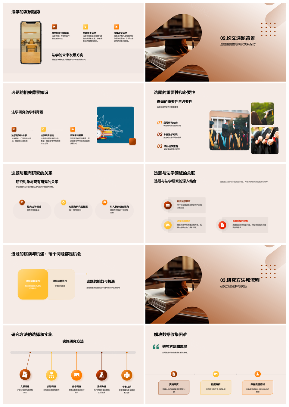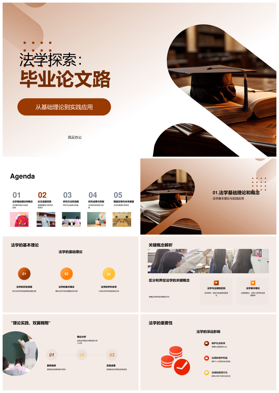 风云办公提供的法学毕业论文理论实践与答辩攻略PPT模板,下载格式为pptx,一共33页,作品中文字及图均可以修改和编辑,图片更改请在作品中右键图片并更换,文字修改请直接点击文字进行修改。