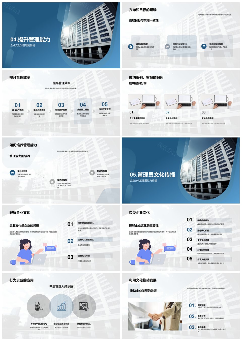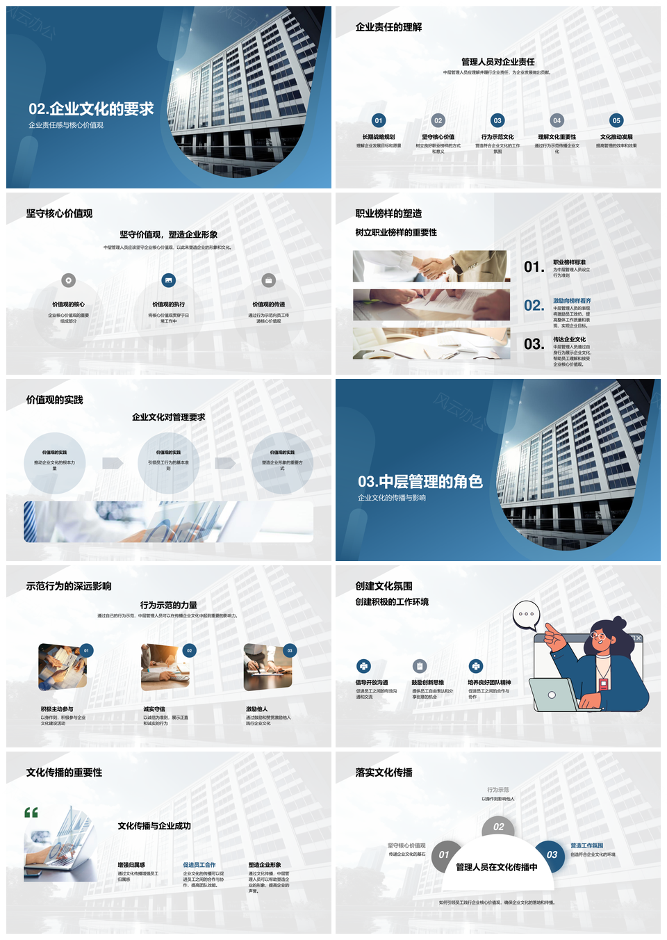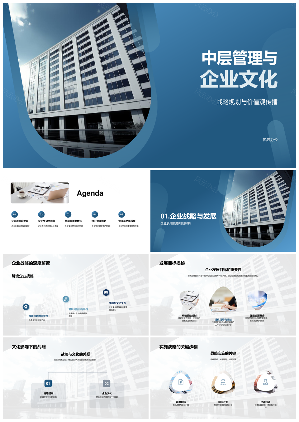 这是一张中层战略规划与企业文化价值观示范引领PPT模板,包含中层、战略规划、企业文化、价值观、示范、引领等主题内容,也可用作中层战略规划与企业文化价值观、中层战略规划示范引领、战略规划企业文化价值观、企业文化价值观示范引领、中层战略规划企业、战略规划示范引领、企业文化价值观示范、中层企业战略规划、战略企业文化价值观、企业文化示范引领、中层战略企业文化、规划企业文化价值观、中层规划企业文化、战略文化价值观示范、企业价值观示范引领等PPT场景使用。 风云办公提供的中层战略规划与企业文化价值观示范引领PPT模板,下载格式为pptx,一共28页,作品中文字及图均可以修改和编辑,图片更改请在作品中右键图片并更换,文字修改请直接点击文字进行修改。