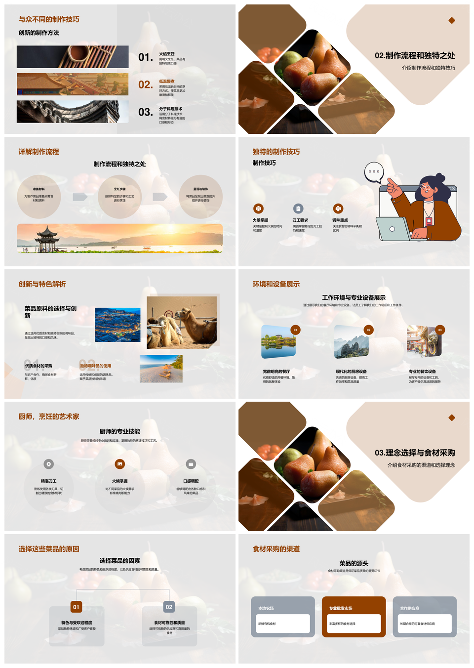 这是一张招牌美食匠心艺境故事菜单口感体验PPT模板,包含招牌美食、匠心艺境、故事、菜单、口感体验等主题内容,也可用作招牌美食匠心艺境、美食匠心艺境故事、匠心艺境故事菜单、艺境故事菜单口感、故事菜单口感体验、招牌美食匠心故事、美食匠心艺境菜单、匠心艺境菜单口感、艺境故事口感体验、招牌美食菜单体验、美食匠心故事口感、匠心艺境口感体验、故事菜单口感体验、招牌美食匠心口感、匠心艺境菜单故事等PPT场景使用。