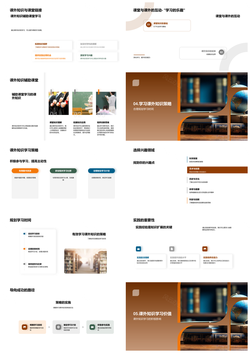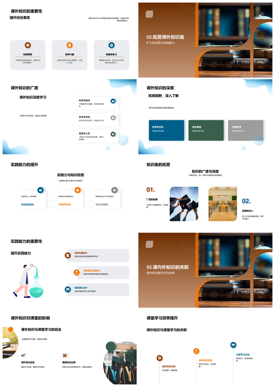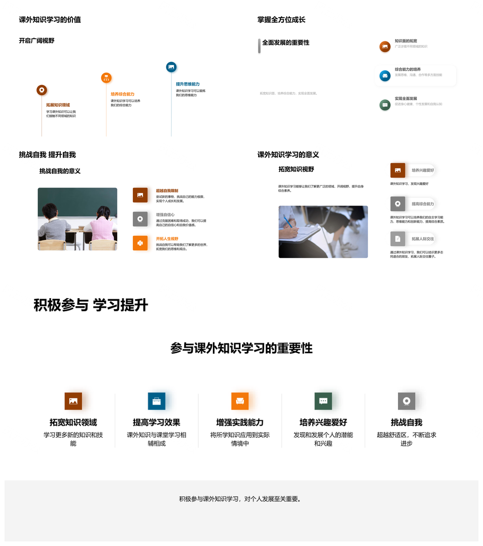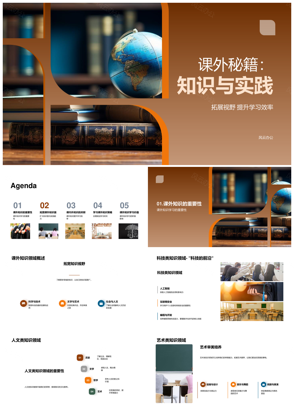 风云办公提供的课外知识实践提升科艺人文学习效率PPT模板,下载格式为pptx,一共33页,作品中文字及图均可以修改和编辑,图片更改请在作品中右键图片并更换,文字修改请直接点击文字进行修改。