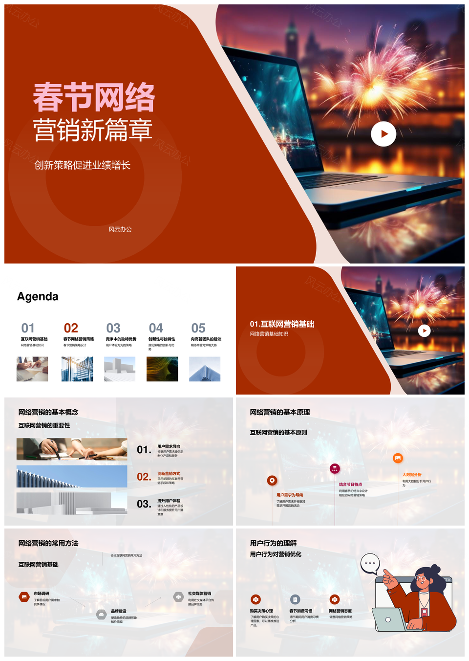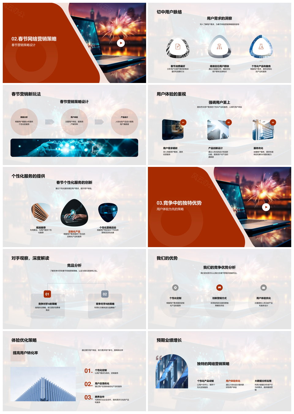 这是一张春节网络营销创新策略驱动业绩用户需求增长PPT模板,包含春节、网络营销、创新策略、驱动、业绩、用户、需求、增长等主题内容,也可用作春节网络营销创新策略、网络营销创新策略驱动、创新策略驱动业绩、策略驱动业绩用户需求、驱动业绩用户需求增长、春节网络营销创新驱动、网络营销创新驱动业绩、创新驱动业绩用户需求、业绩用户需求增长驱动、春节创新策略驱动、创新策略驱动用户需求、驱动用户需求增长创新、策略驱动用户需求增长、网络营销驱动业绩增长、用户需求增长创新策略等PPT场景使用。 风云办公提供的春节网络营销创新策略驱动业绩用户需求增长PPT模板,下载格式为pptx,一共27页,作品中文字及图均可以修改和编辑,图片更改请在作品中右键图片并更换,文字修改请直接点击文字进行修改。