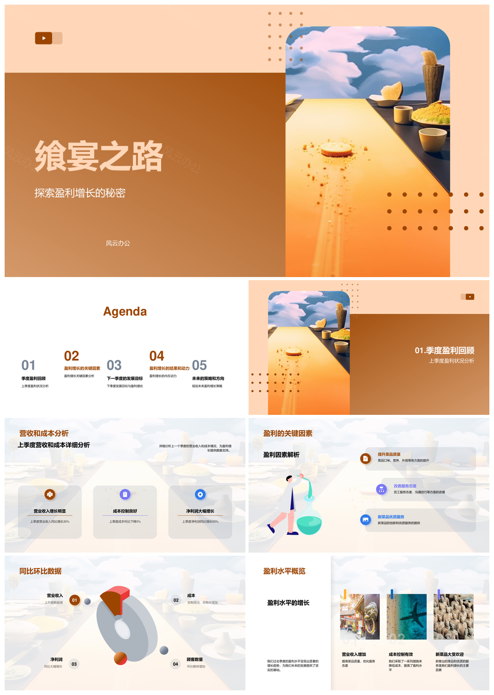 这是一张飨宴之路餐饮业季度盈利增长菜品服务新品满意度PPT模板,包含飨宴之路、餐饮业、季度、盈利增长、菜品、服务、新品、满意度等主题内容,也可用作飨宴餐饮业季度盈利增长、餐饮业季度盈利增长菜品、季度盈利增长菜品服务、盈利增长菜品服务新品、增长菜品服务新品满意度、飨宴餐饮业季度盈利、餐饮业季度盈利增长、季度盈利增长菜品、盈利增长菜品服务、增长菜品服务新品、菜品服务新品满意度、餐饮业季度盈利、季度盈利增长、盈利增长菜品、增长菜品服务等PPT场景使用。 风云办公提供的飨宴之路餐饮业季度盈利增长菜品服务新品满意度PPT模板,下载格式为pptx,一共33页,作品中文字及图均可以修改和编辑,图片更改请在作品中右键图片并更换,文字修改请直接点击文字进行修改。
