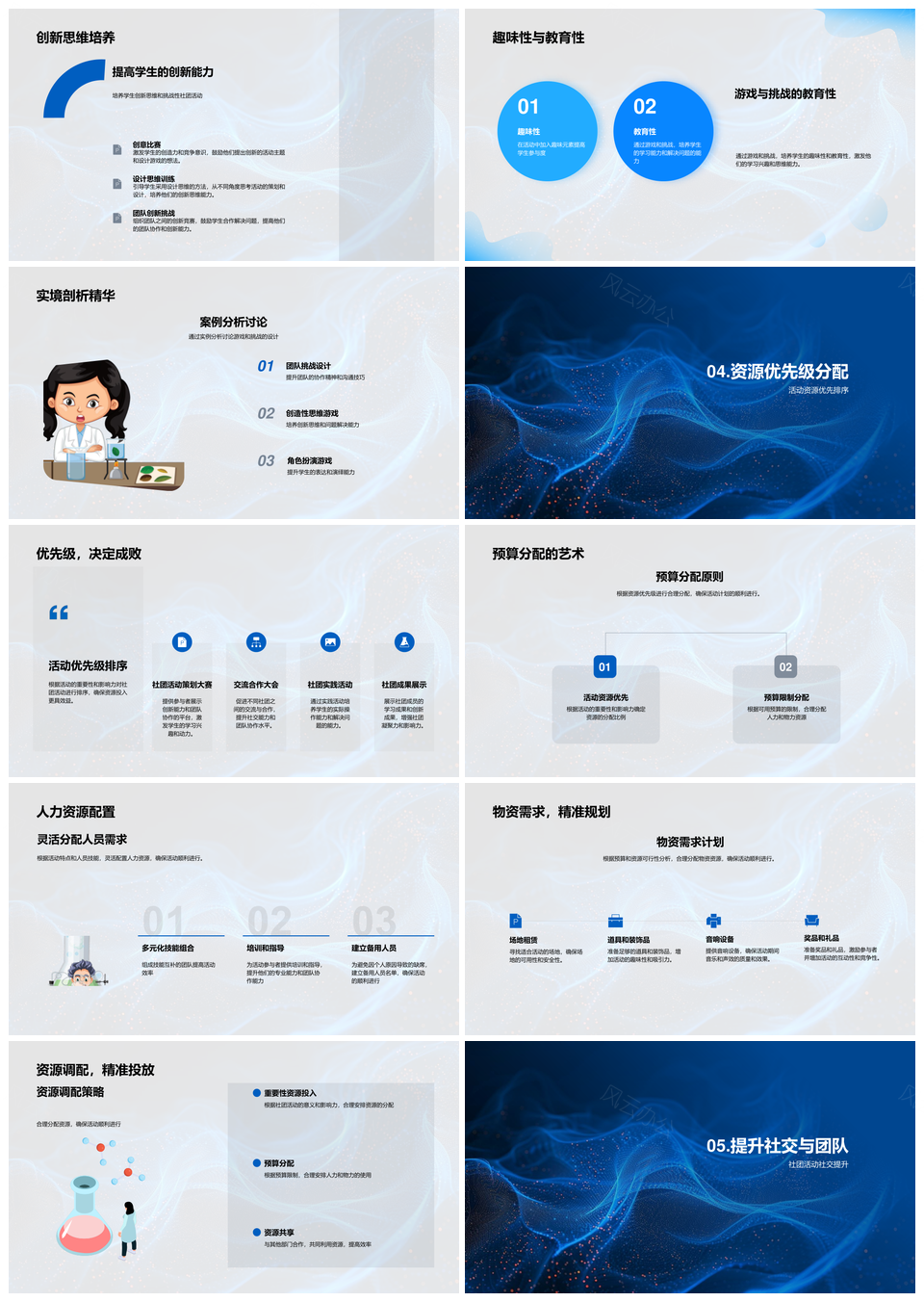 社团活动规划社交协作兴趣优先资源分配计划PPT模板推荐