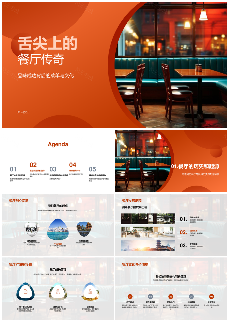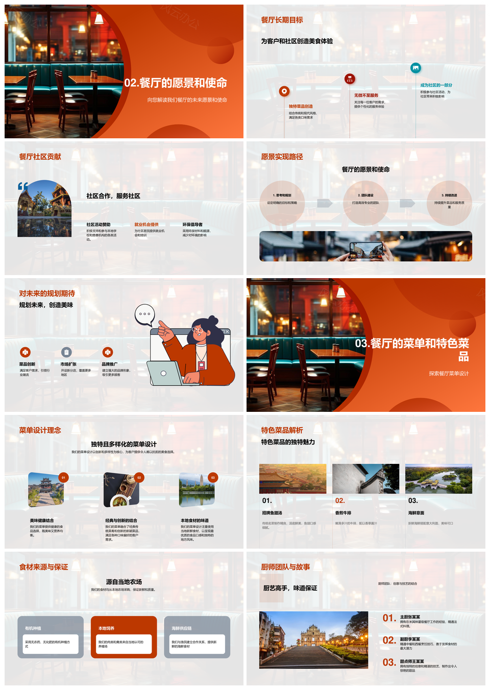 传奇餐厅文化历史特色菜品食材PPT模板推荐