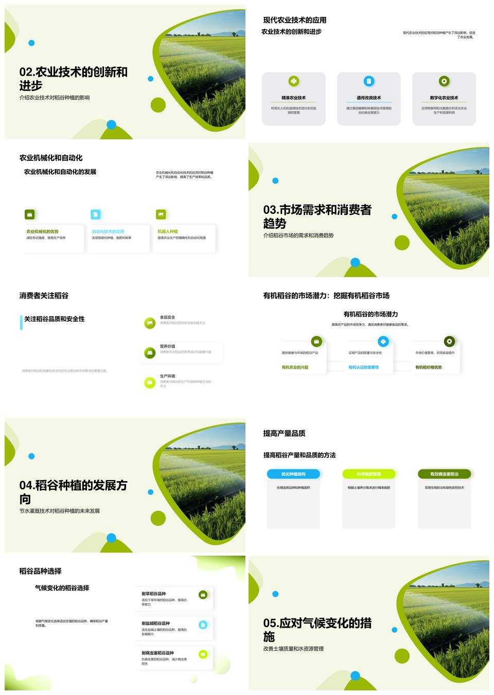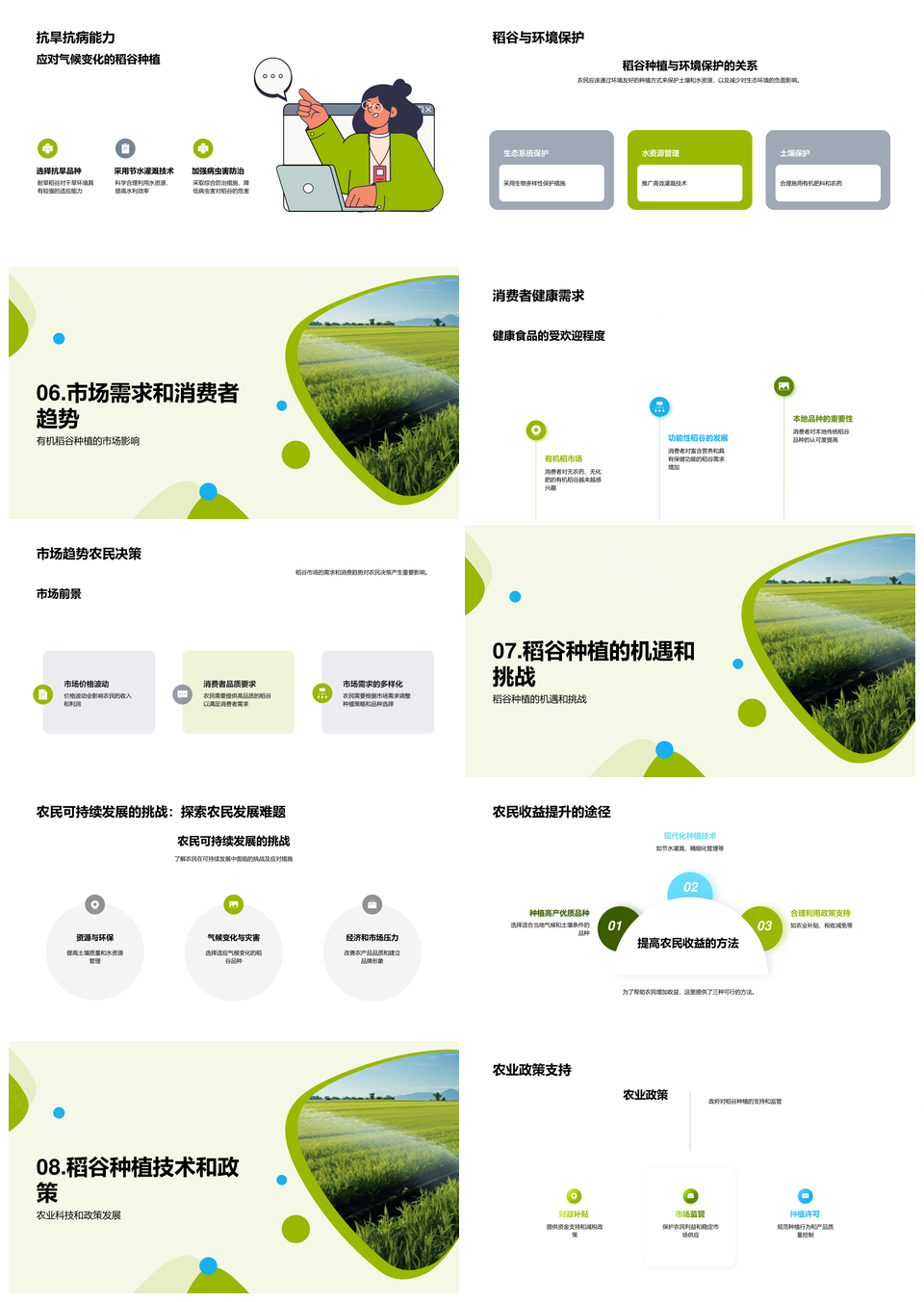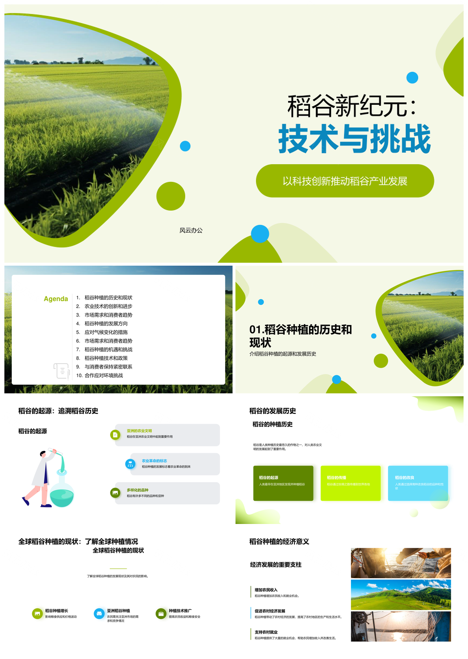 风云办公提供的稻谷种植全球发展史与农经趋势PPT模板,下载格式为pptx,一共35页,作品中文字及图均可以修改和编辑,图片更改请在作品中右键图片并更换,文字修改请直接点击文字进行修改。