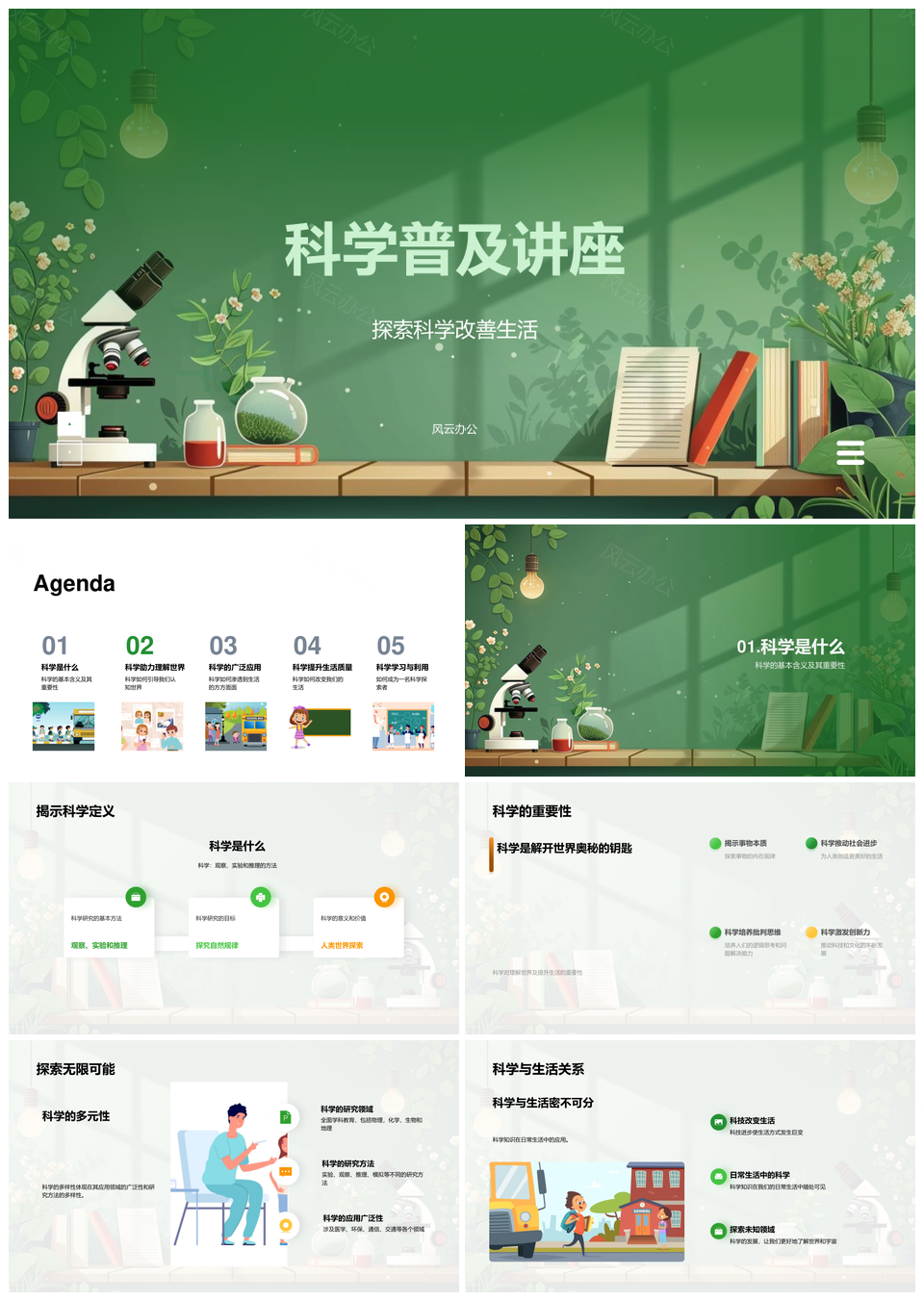 科学普及定义应用方法技术知识构建智能讲座PPT模板推荐