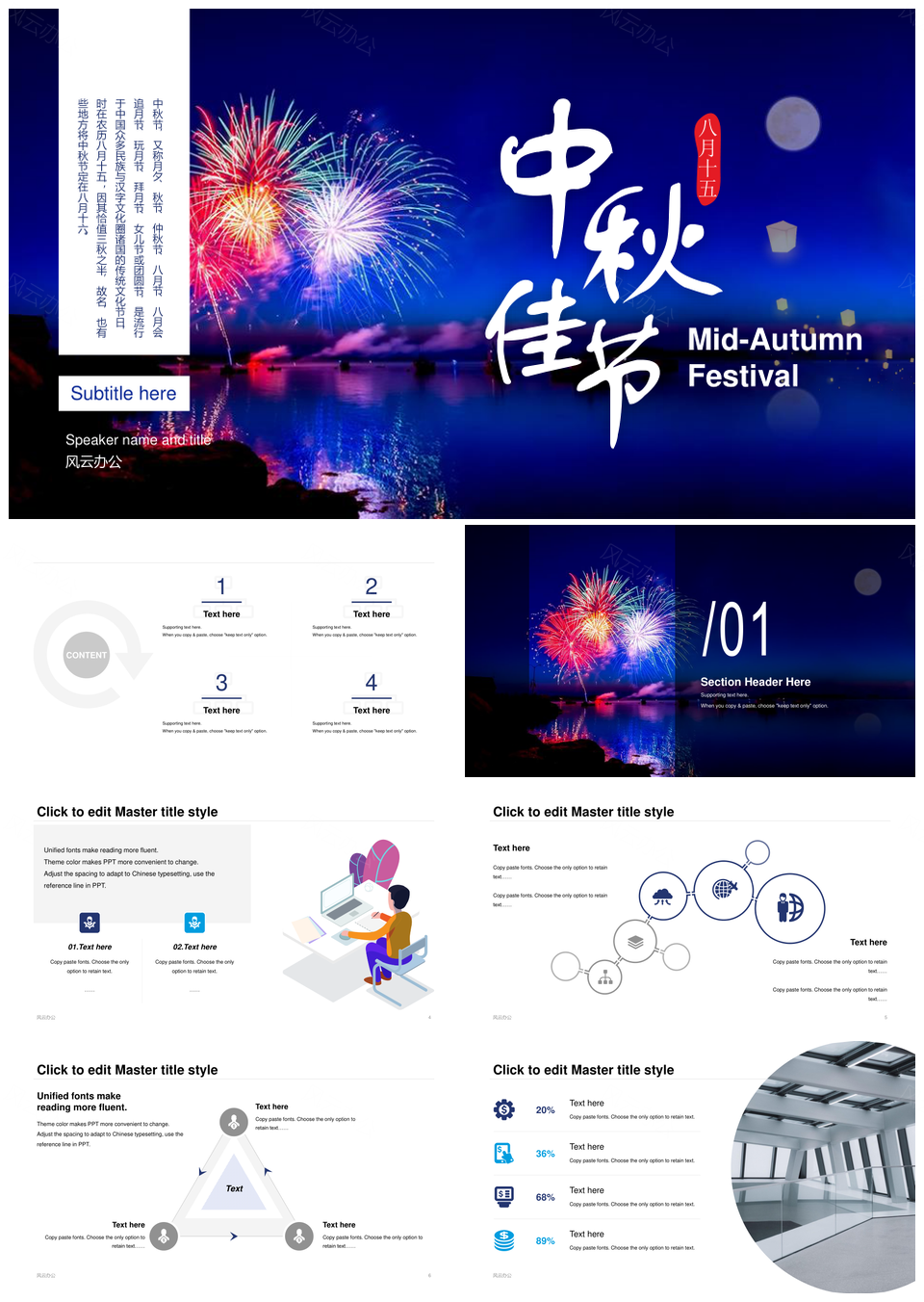 风云办公提供的中秋佳节团圆烟花庆典活动策划PPT模板,下载格式为pptx,一共29页,作品中文字及图均可以修改和编辑,图片更改请在作品中右键图片并更换,文字修改请直接点击文字进行修改。