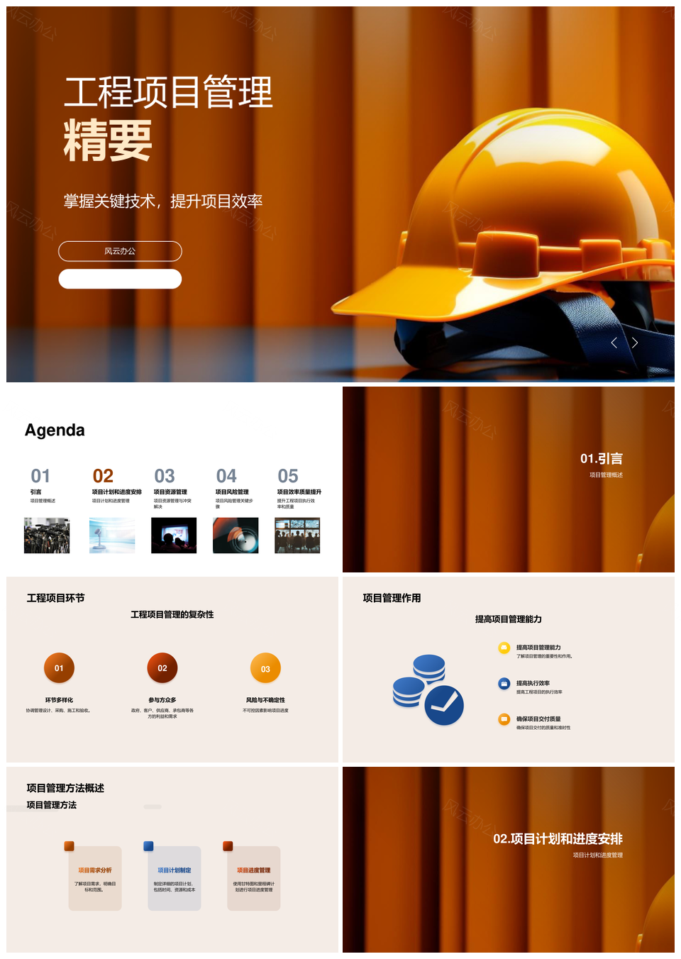 工程项目管理实践建筑头盔流程挑战经验PPT模板