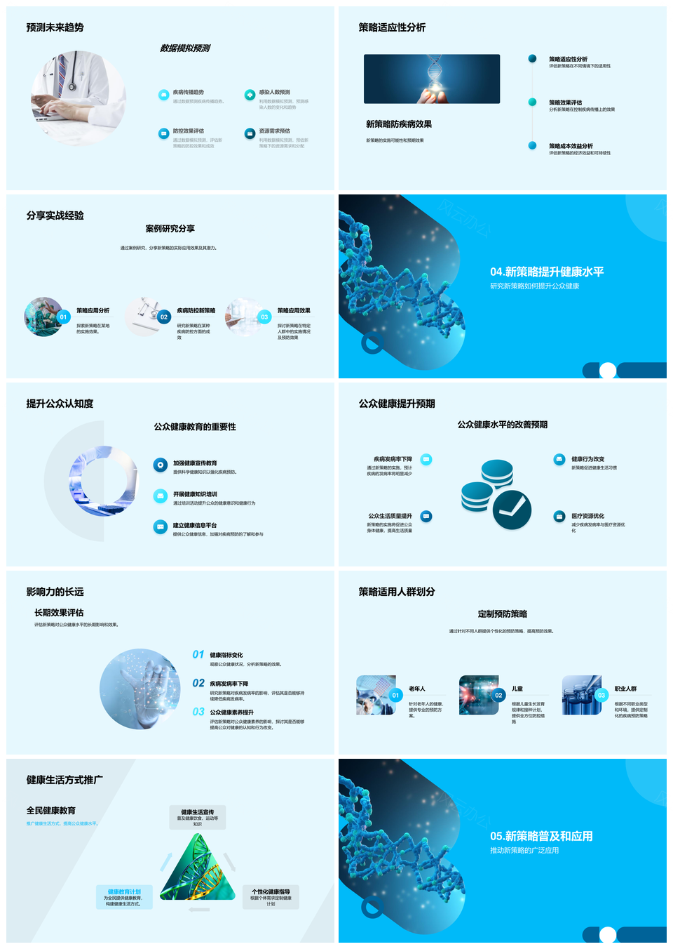 这是一张生物医疗数据驱动疾病防控新策略护健康PPT模板,包含生物医疗、数据、驱动、疾病、防控、新策略、护健康等主题内容,也可用作生物医疗数据驱动疾病防控新策略、数据驱动疾病防控新策略护健康、生物医疗数据驱动疾病防控、数据驱动疾病防控新策略、疾病防控新策略护健康、生物医疗疾病防控新策略、生物医疗数据驱动、数据驱动疾病防控、疾病防控新策略、新策略护健康、生物医疗疾病防控、数据驱动新策略、疾病防控护健康、生物医疗新策略、数据驱动护健康等PPT场景使用。 风云办公提供的生物医疗数据驱动疾病防控新策略护健康PPT模板,下载格式为pptx,一共33页,作品中文字及图均可以修改和编辑,图片更改请在作品中右键图片并更换,文字修改请直接点击文字进行修改。