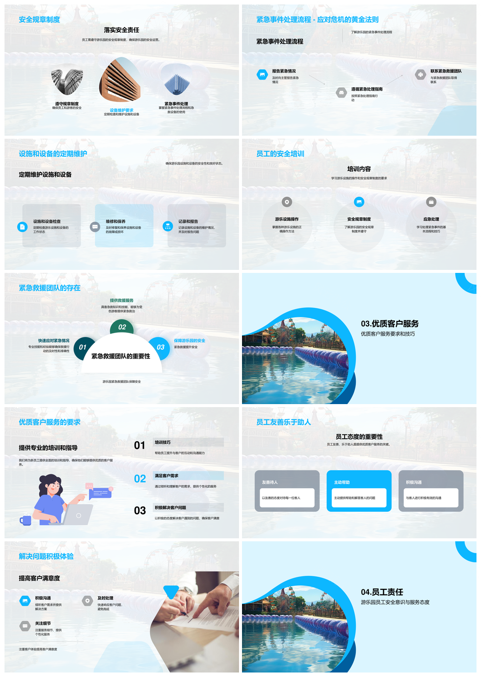 这是一张游乐园精英运营管理安全服务历史设施成就指南PPT模板,包含游乐园、精英、运营、管理、安全、服务、历史、设施、成就、指南等主题内容,也可用作游乐园精英运营管理安全服务、精英运营管理安全服务、运营管理安全服务历史、管理安全服务历史设施、安全服务历史设施成就、服务历史设施成就指南、游乐园精英运营管理、精英运营管理安全、运营管理安全服务、管理安全服务历史、安全服务历史设施、服务历史设施成就、历史设施成就指南、游乐园精英运营、精英运营管理等PPT场景使用。 风云办公提供的游乐园精英运营管理安全服务历史设施成就指南PPT模板,下载格式为pptx,一共28页,作品中文字及图均可以修改和编辑,图片更改请在作品中右键图片并更换,文字修改请直接点击文字进行修改。