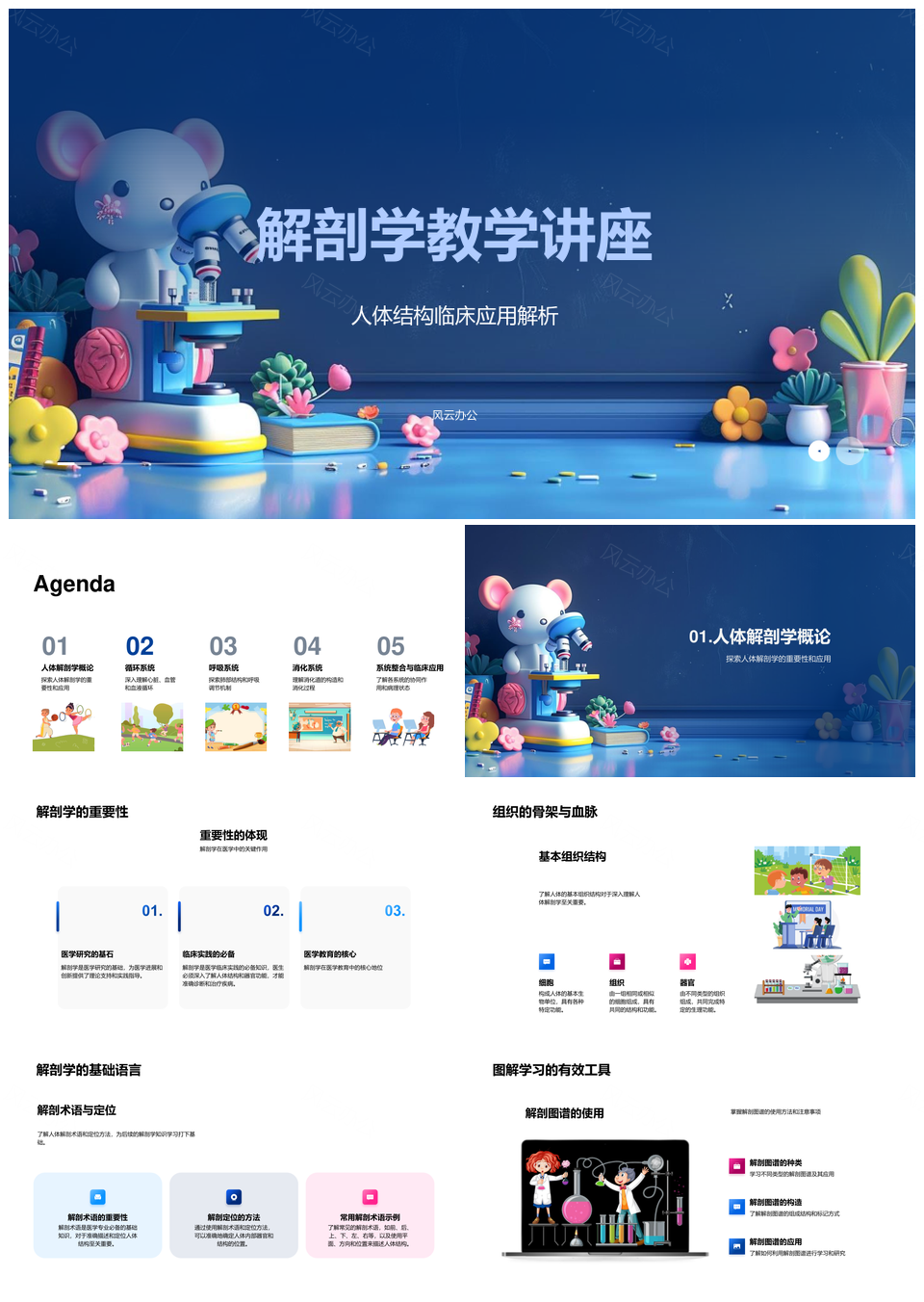 解剖学人体结构功能细胞组织器官系统解析PPT模板