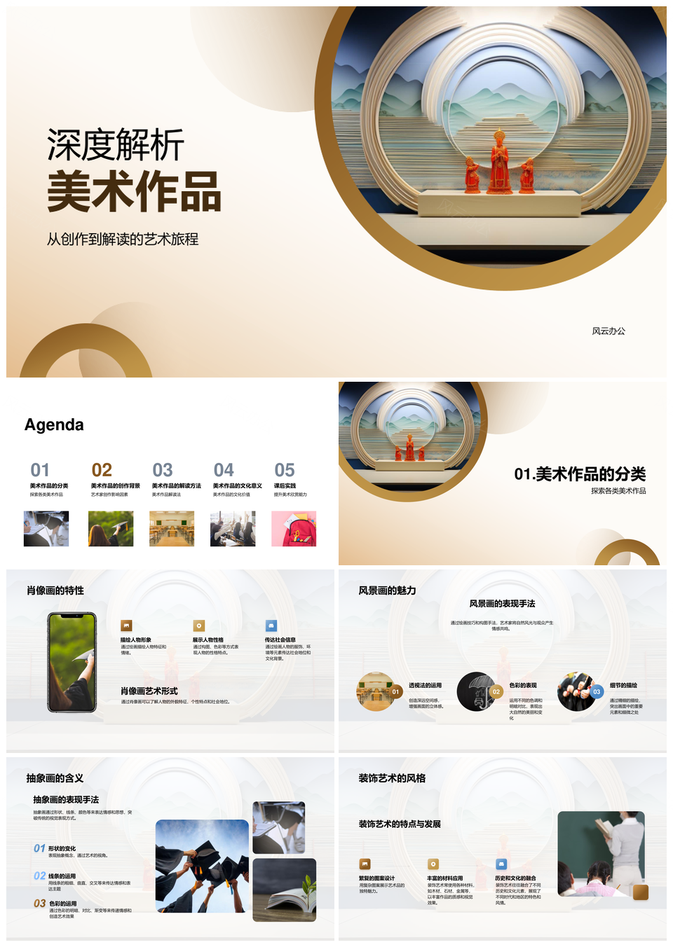 风云办公提供的四年级美术教育肖像风景抽象画解析PPT模板,下载格式为pptx,一共33页,作品中文字及图均可以修改和编辑,图片更改请在作品中右键图片并更换,文字修改请直接点击文字进行修改。