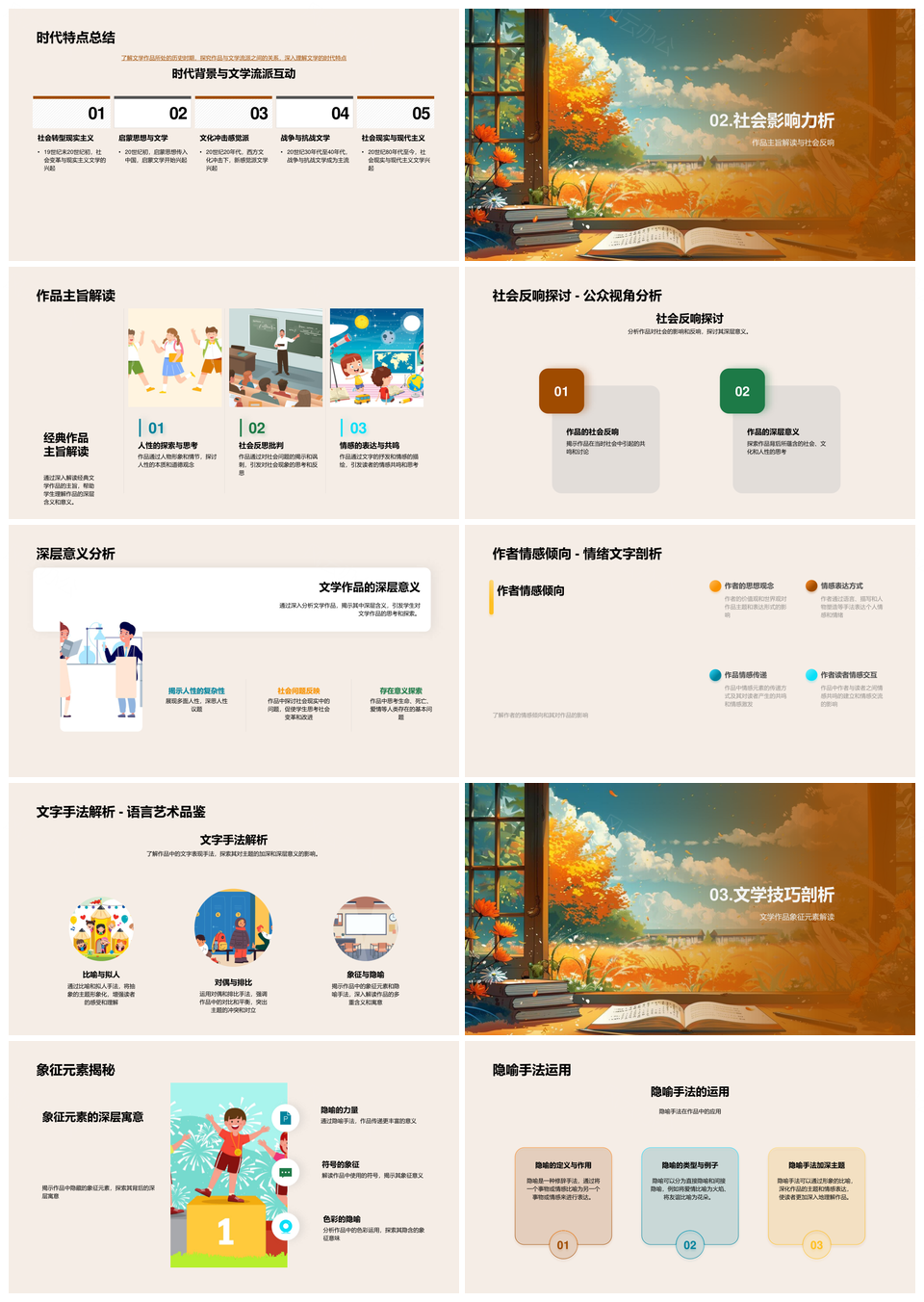 高中文学作品解析流派主旨背景生平影响反响PPT模板推荐