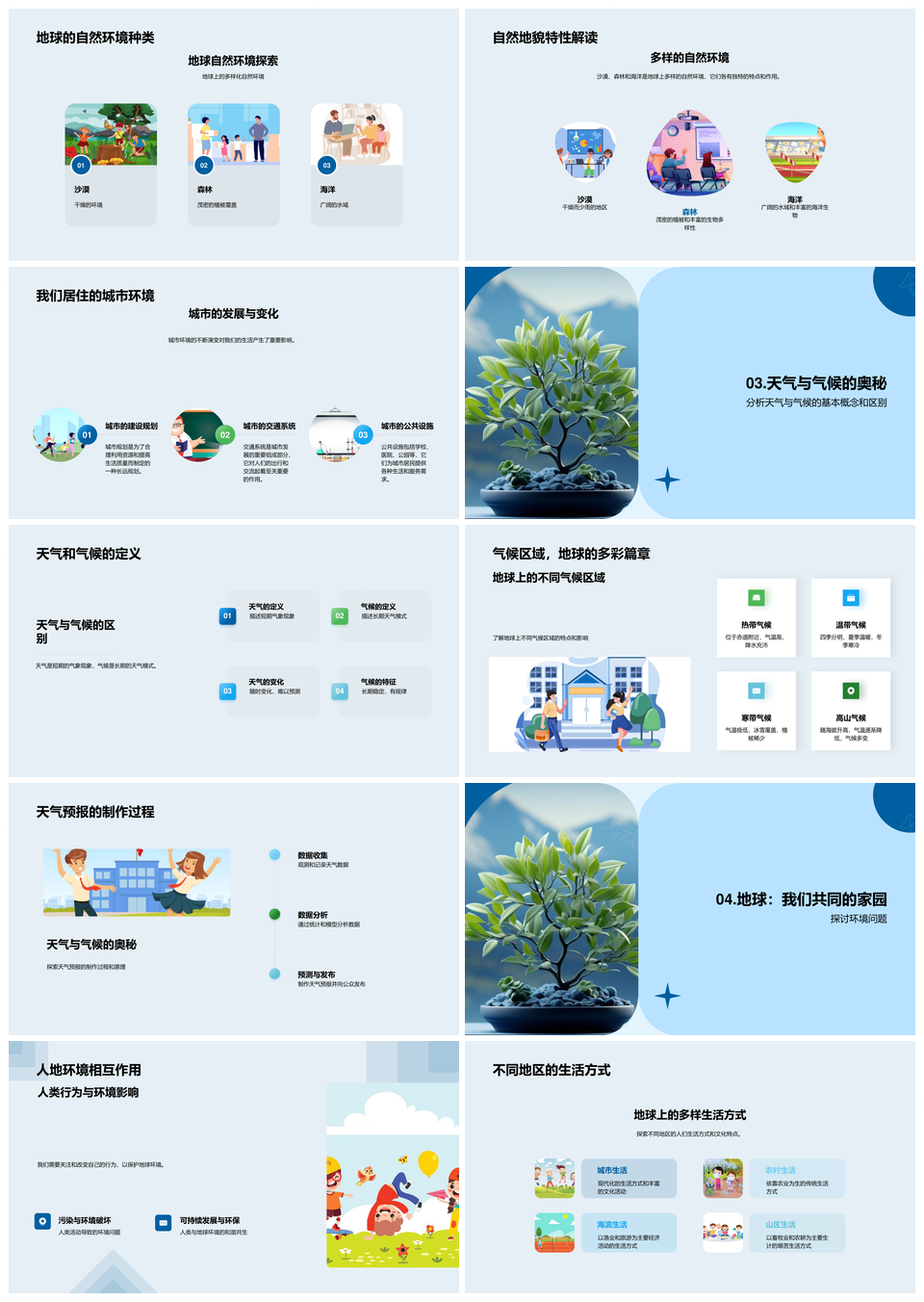 风云办公提供的地球环境气候与绿色城市自然共建PPT模板,下载格式为pptx,一共23页,作品中文字及图均可以修改和编辑,图片更改请在作品中右键图片并更换,文字修改请直接点击文字进行修改。