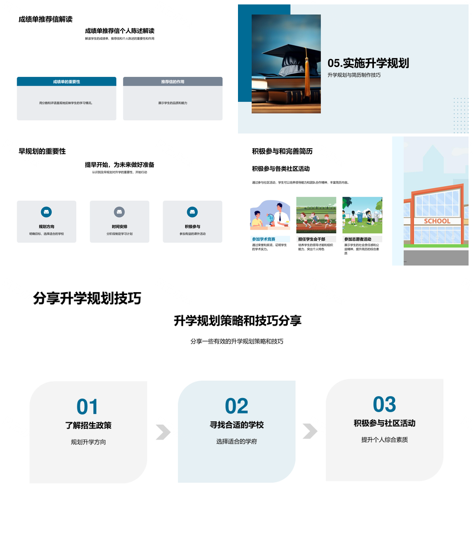 这是一张升学简历写作规划成功案例能力成就展示PPT模板,包含升学、简历、写作、规划、成功、案例、能力、成就、展示等主题内容,也可用作升学简历写作规划、规划成功案例能力、成功案例能力成就、案例能力成就展示、升学简历写作、简历写作规划、规划成功案例、成功案例能力、案例能力成就、能力成就展示、升学简历、简历写作、写作规划、成功案例、成就展示等PPT场景使用。 风云办公提供的升学简历写作规划成功案例能力成就展示PPT模板,下载格式为pptx,一共23页,作品中文字及图均可以修改和编辑,图片更改请在作品中右键图片并更换,文字修改请直接点击文字进行修改。