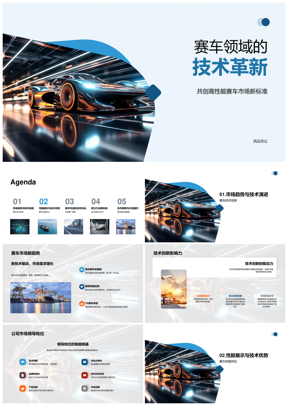 风云办公提供的技术革新驱动高性能赛车市场领跑PPT模板,下载格式为pptx,一共23页,作品中文字及图均可以修改和编辑,图片更改请在作品中右键图片并更换,文字修改请直接点击文字进行修改。