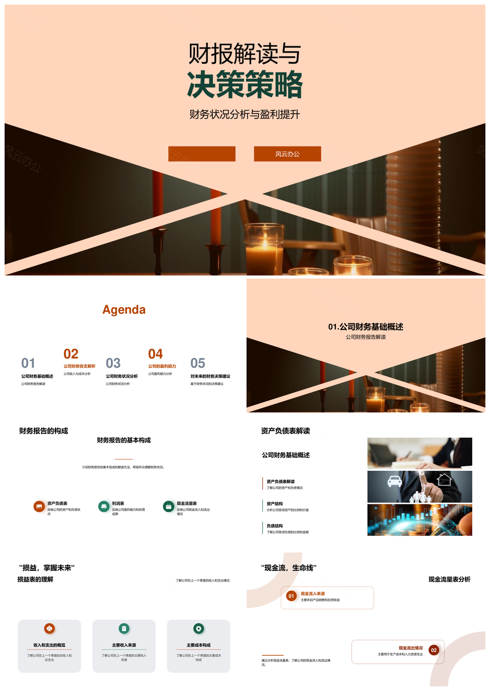 风云办公提供的财报解析决策策略提升盈利PPT模板,下载格式为pptx,一共33页,作品中文字及图均可以修改和编辑,图片更改请在作品中右键图片并更换,文字修改请直接点击文字进行修改。
