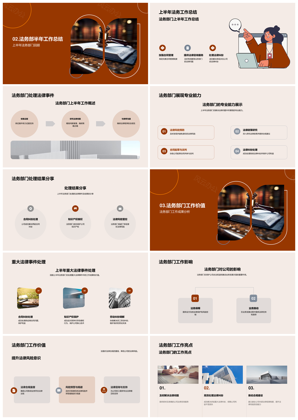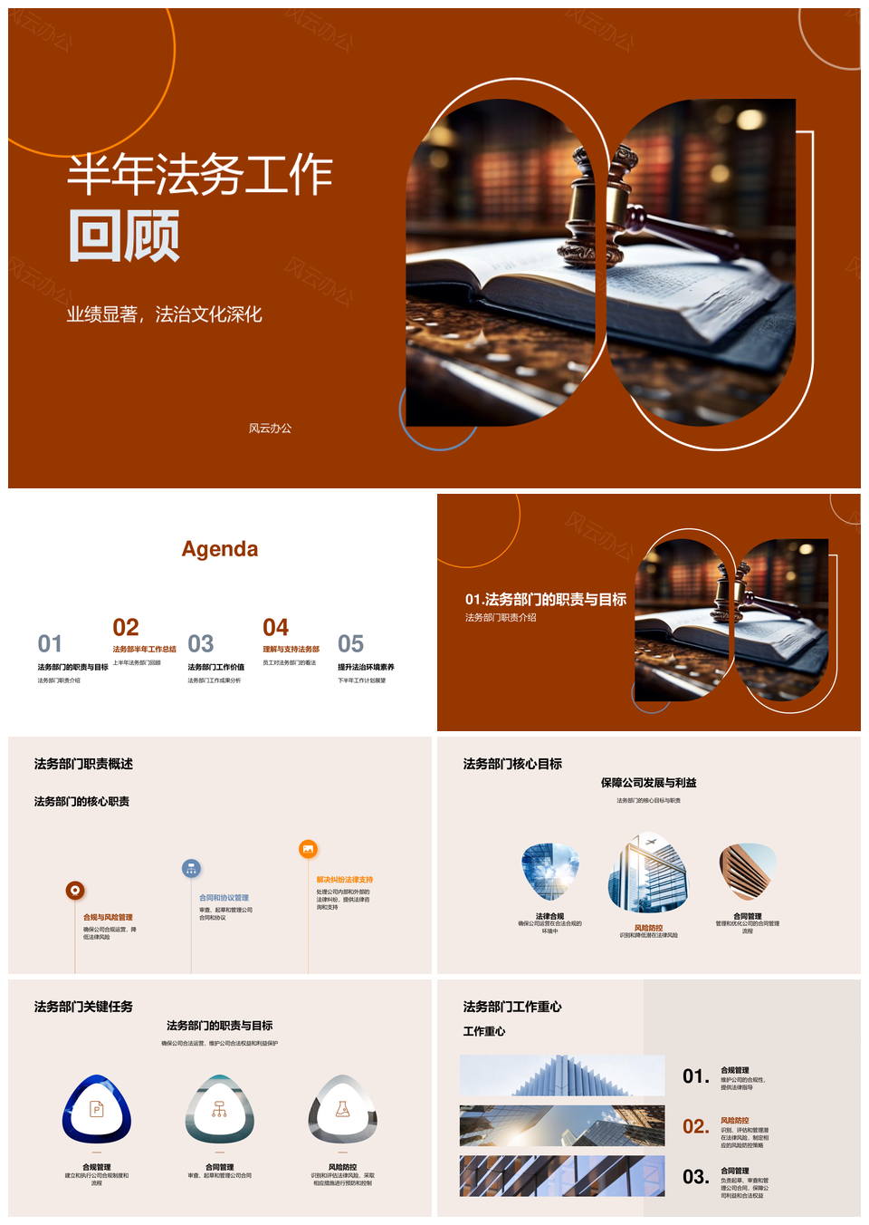 风云办公提供的法务部门半年法律事件处理与业绩回顾PPT模板,下载格式为pptx,一共28页,作品中文字及图均可以修改和编辑,图片更改请在作品中右键图片并更换,文字修改请直接点击文字进行修改。