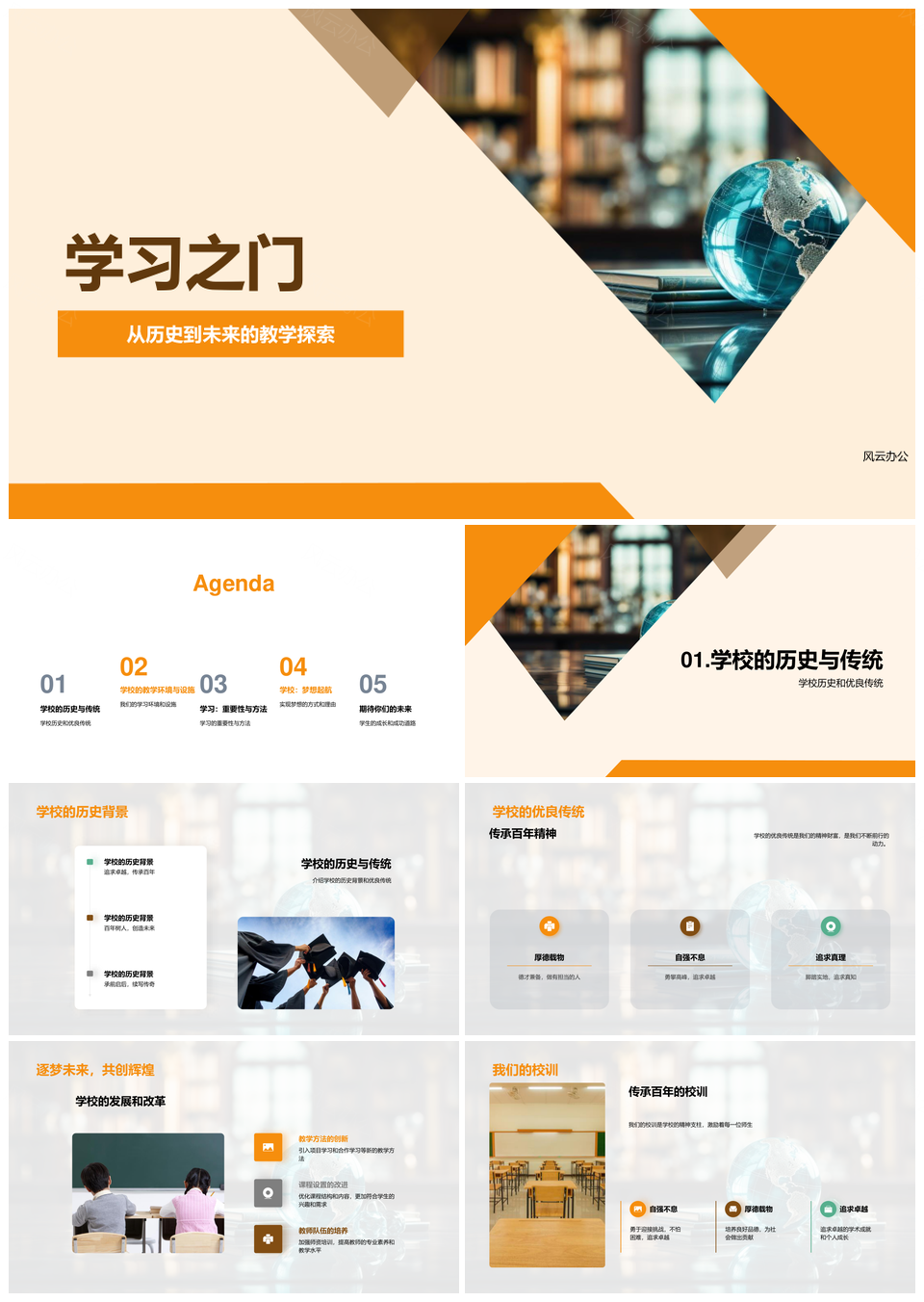 风云办公提供的学习之门传承探索科技优教养习PPT模板,下载格式为pptx,一共29页,作品中文字及图均可以修改和编辑,图片更改请在作品中右键图片并更换,文字修改请直接点击文字进行修改。