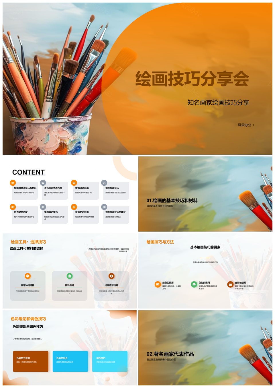 知名画家分享绘画技巧工具材料与色彩练习方法PPT模板推荐