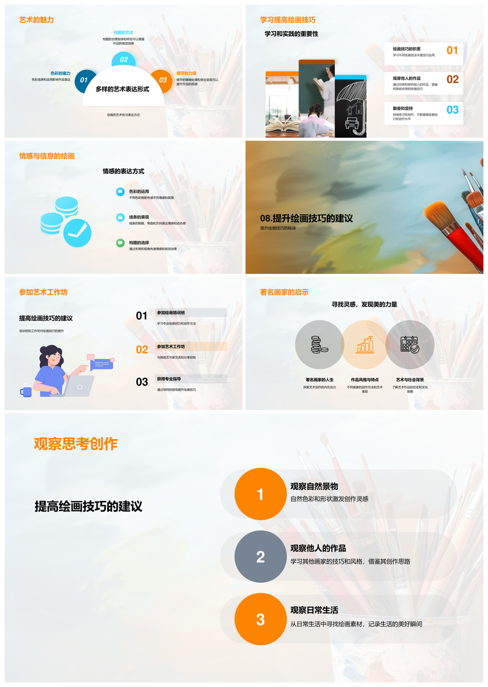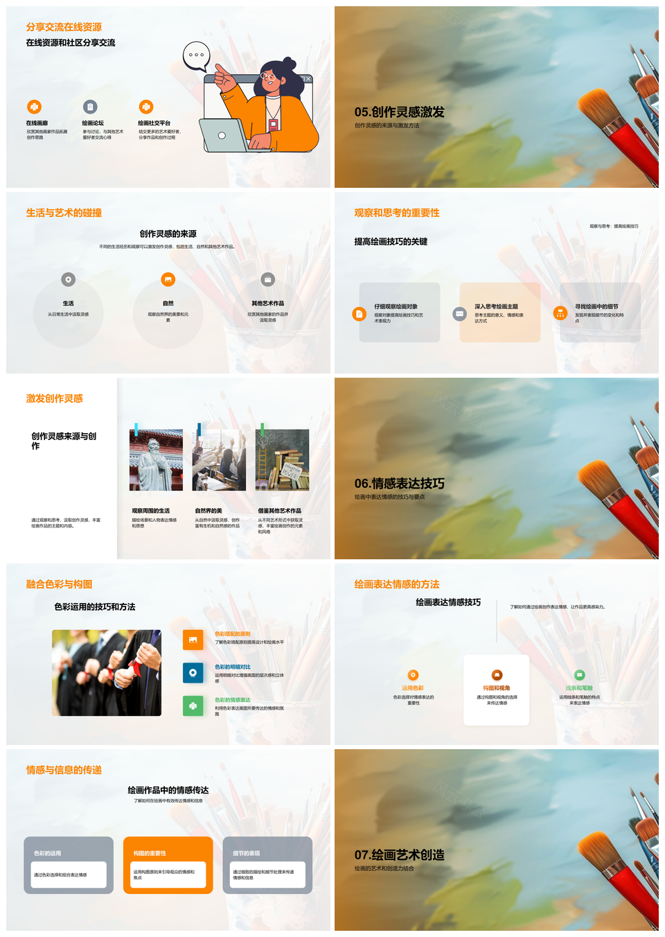 绘画技巧理论实践基础构图色彩明暗画笔颜料PPT模板