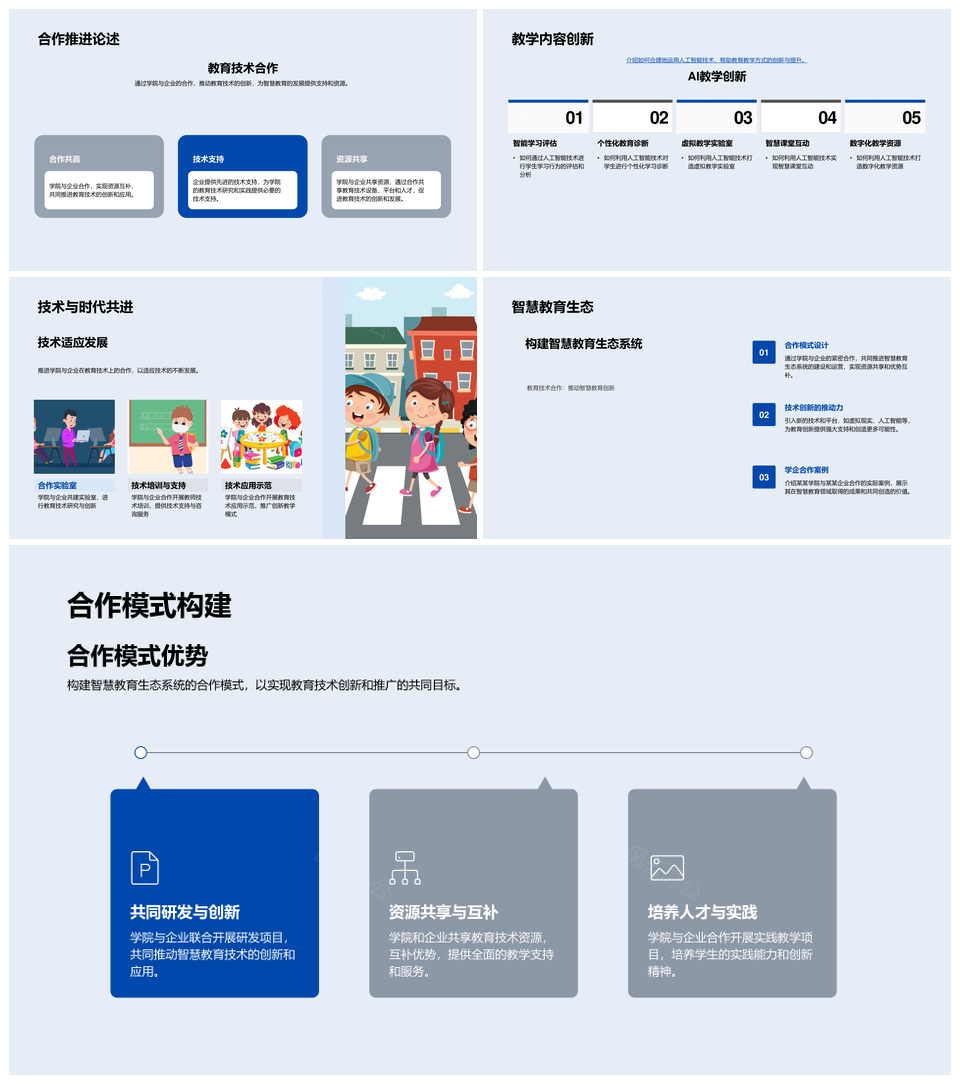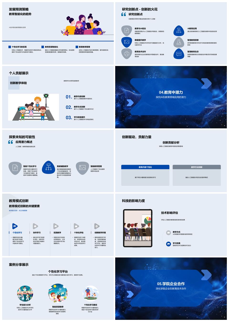 这是一张智慧教育人工智能融合创新教学全球趋势案例分析PPT模板,包含智慧教育、人工智能、融合创新、教学、全球趋势、案例分析等主题内容,也可用作智慧教育人工智能融合创新、人工智能融合创新教学、融合创新教学全球趋势、创新教学全球趋势案例分析、智慧教育人工智能融合、人工智能融合创新、融合创新教学、创新教学全球趋势、教学全球趋势案例分析、智慧教育人工智能、人工智能融合、融合创新、创新教学、教学全球趋势、全球趋势案例分析等PPT场景使用。 风云办公提供的智慧教育人工智能融合创新教学全球趋势案例分析PPT模板,下载格式为pptx,一共33页,作品中文字及图均可以修改和编辑,图片更改请在作品中右键图片并更换,文字修改请直接点击文字进行修改。