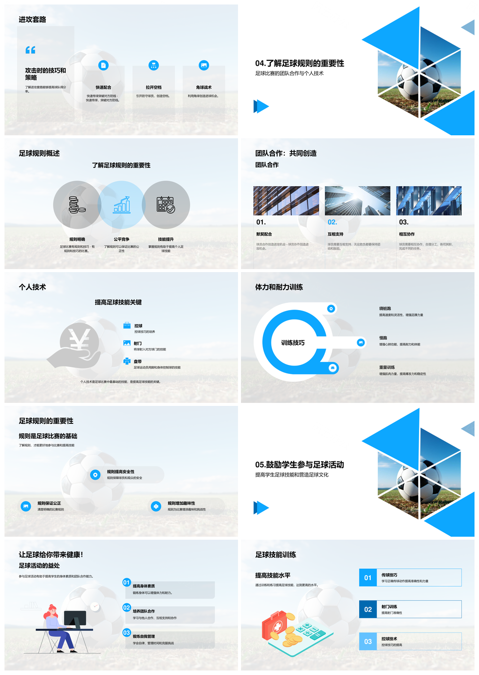 风云办公提供的足球技术战术规则教练比赛传球射门PPT模板,下载格式为pptx,一共31页,作品中文字及图均可以修改和编辑,图片更改请在作品中右键图片并更换,文字修改请直接点击文字进行修改。