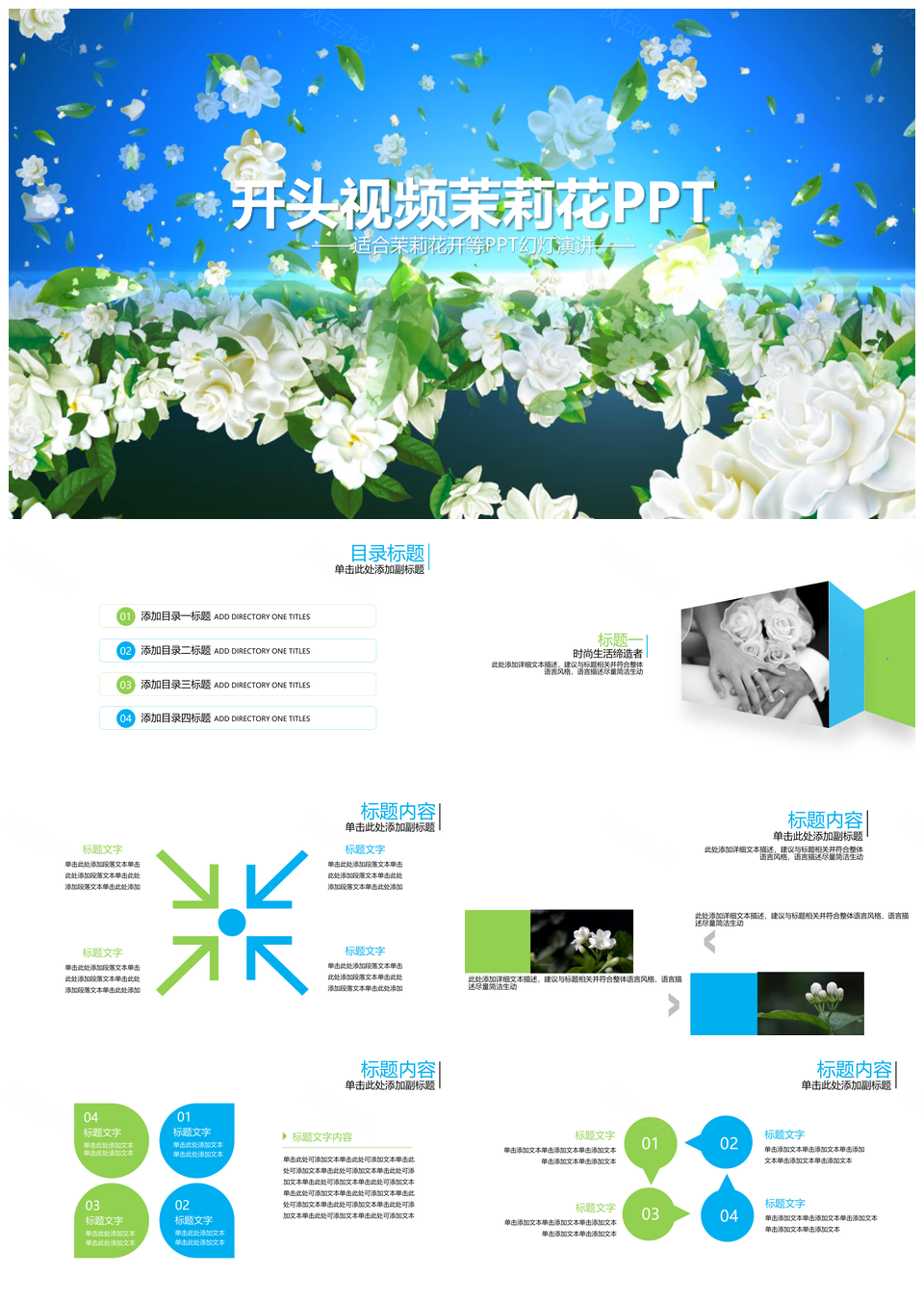 风云办公提供的茉莉花开动态PPT视频片头花海飘香,下载格式为pptx,一共31页,作品中文字及图均可以修改和编辑,图片更改请在作品中右键图片并更换,文字修改请直接点击文字进行修改。