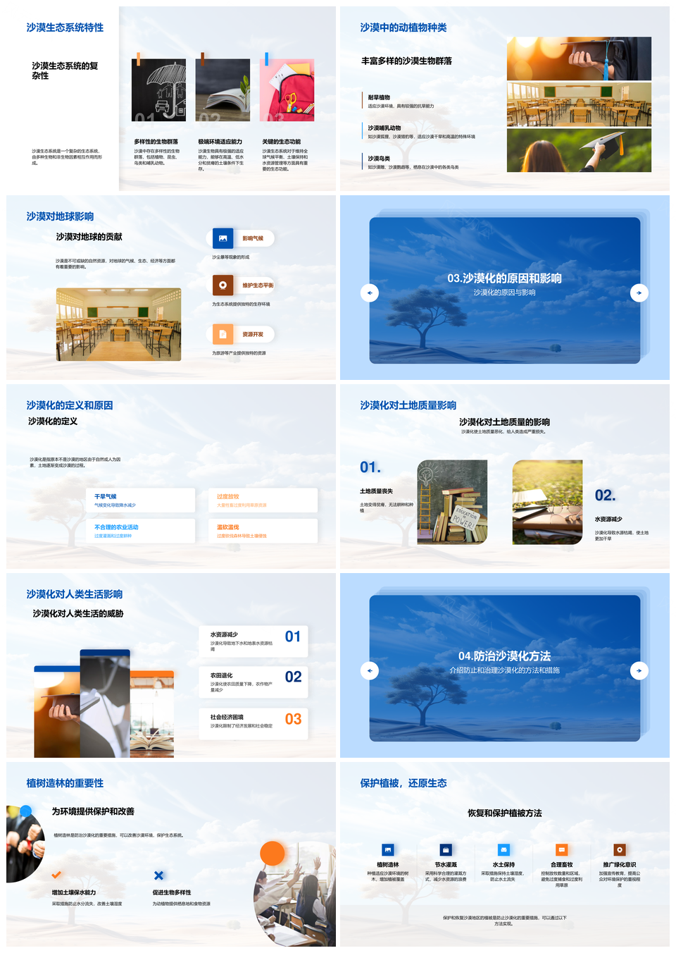 风云办公提供的沙漠化防治与植树造林生态可持续发展PPT模板,下载格式为pptx,一共23页,作品中文字及图均可以修改和编辑,图片更改请在作品中右键图片并更换,文字修改请直接点击文字进行修改。