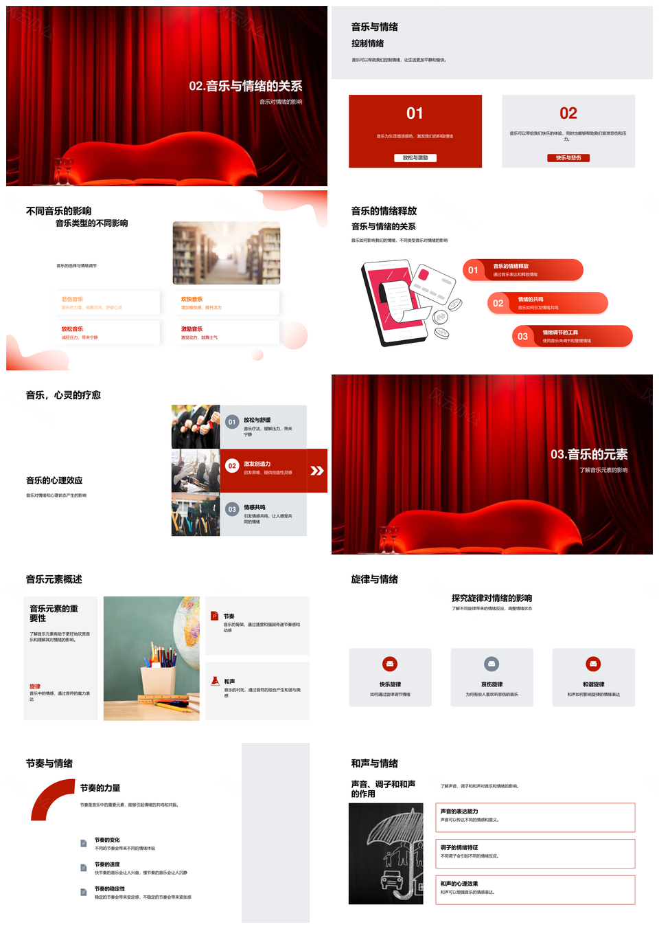 这是一张音乐符号与情感色彩解析PPT模板,包含音乐符号、情感色彩、解析等主题内容,也可用作音乐符号解析、情感色彩解析、解析音乐符号、解析情感色彩、音乐符号情感、符号情感色彩、音乐情感解析、符号色彩解析、音乐情感色彩、符号情感解析、音乐符号、情感色彩、符号解析、色彩解析、音乐解析等PPT场景使用。 风云办公提供的音乐符号与情感色彩解析PPT模板,下载格式为pptx,一共28页,作品中文字及图均可以修改和编辑,图片更改请在作品中右键图片并更换,文字修改请直接点击文字进行修改。