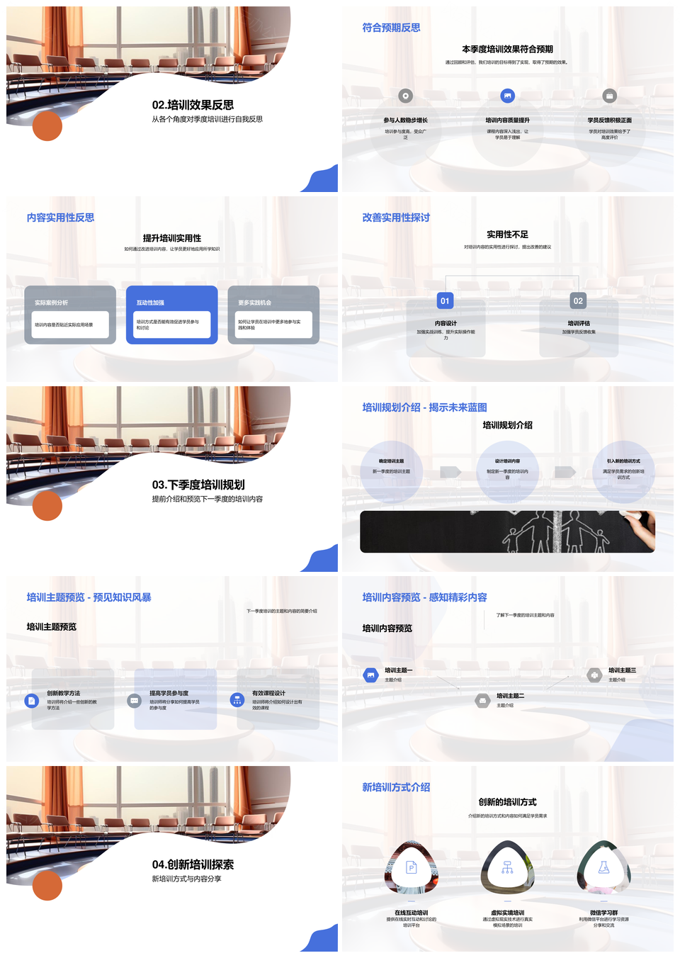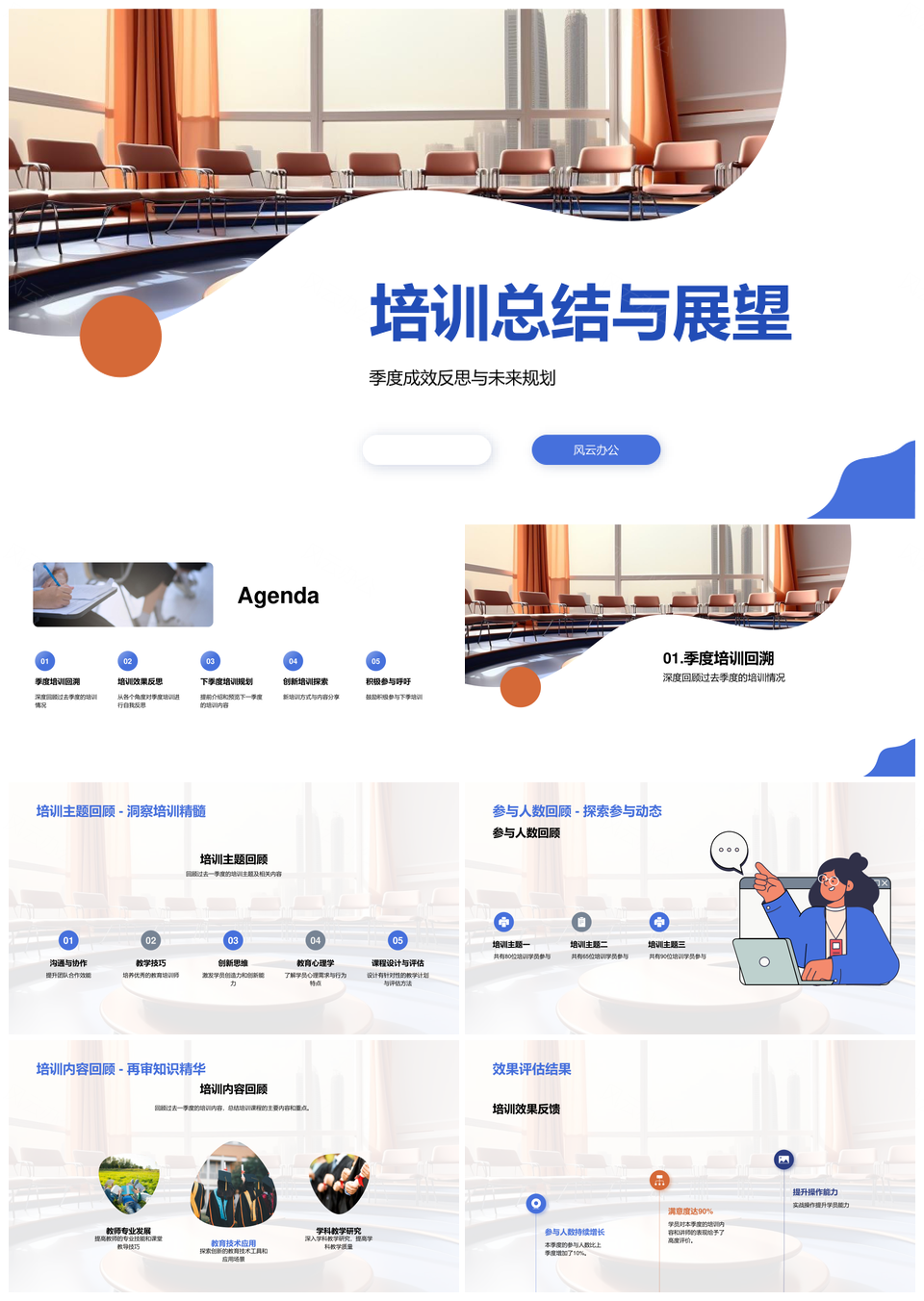 风云办公提供的季度培训成效总结及未来规划PPT模板,下载格式为pptx,一共24页,作品中文字及图均可以修改和编辑,图片更改请在作品中右键图片并更换,文字修改请直接点击文字进行修改。