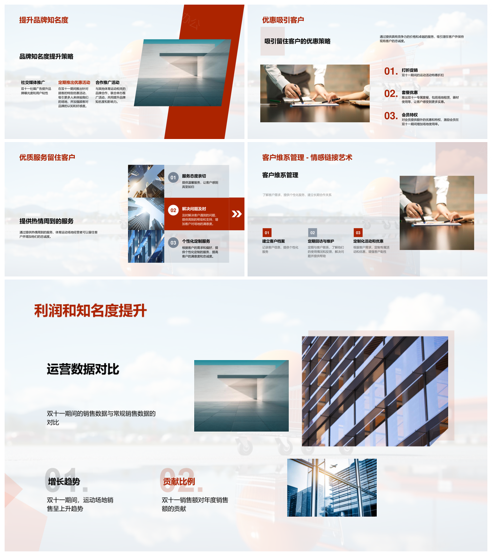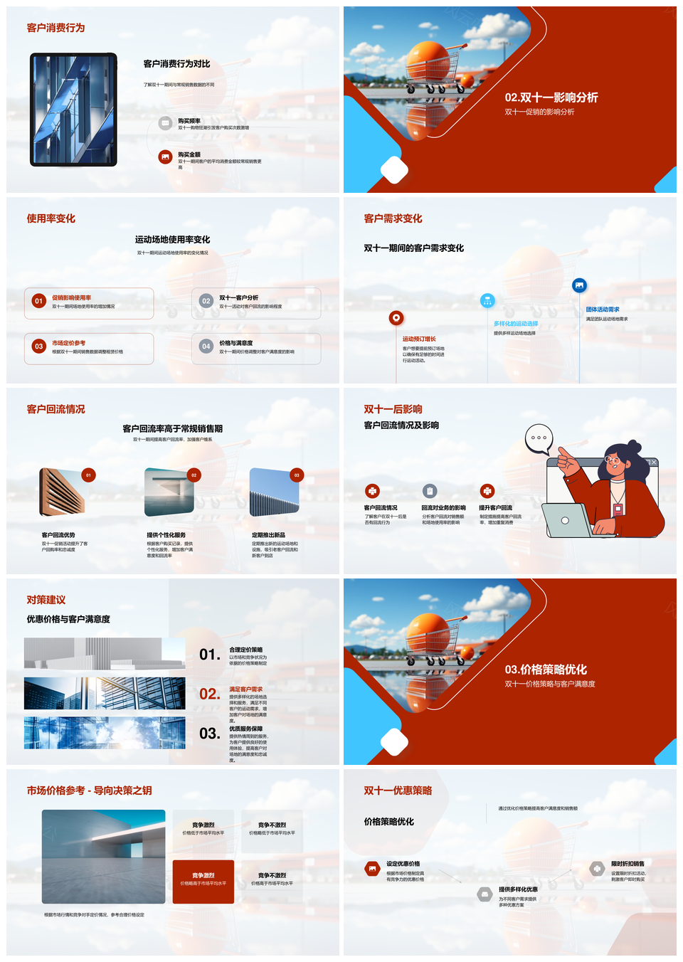 这是一张运动场地双十一优惠价格策略提升销售数据客户行为PPT模板,包含运动场地、双十一、优惠、价格、策略、提升、销售数据、客户行为等主题内容,也可用作运动场地双十一优惠价格策略、双十一优惠价格策略提升销售数据、优惠价格策略提升销售数据客户行为、运动场地双十一优惠价格、双十一优惠价格策略提升、优惠价格策略提升销售、价格策略提升销售数据客户、提升销售数据客户行为、运动场地双十一优惠、双十一优惠价格策略、优惠价格策略提升、价格策略提升销售数据、提升销售数据客户、销售数据客户行为、运动场地双十一等PPT场景使用。 风云办公提供的运动场地双十一优惠价格策略提升销售数据客户行为PPT模板,下载格式为pptx,一共33页,作品中文字及图均可以修改和编辑,图片更改请在作品中右键图片并更换,文字修改请直接点击文字进行修改。