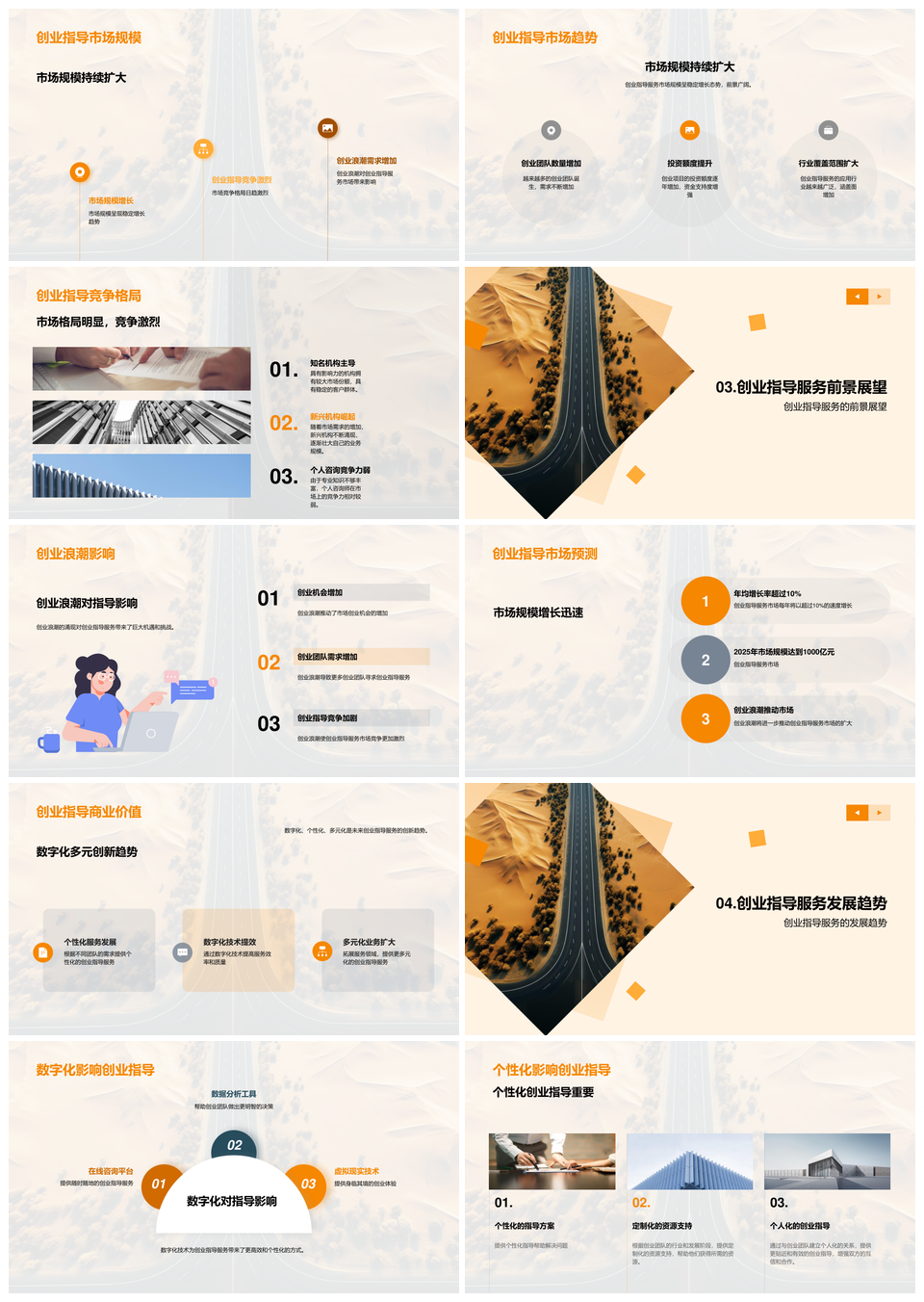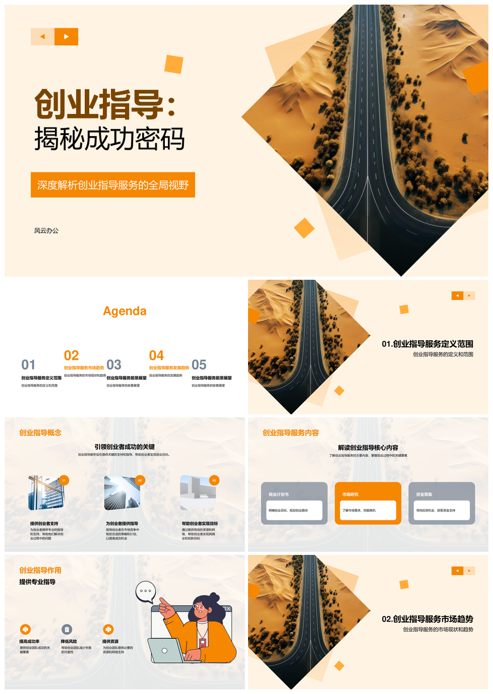 风云办公提供的创业指导成功之路未来路线图PPT模板,下载格式为pptx,一共23页,作品中文字及图均可以修改和编辑,图片更改请在作品中右键图片并更换,文字修改请直接点击文字进行修改。