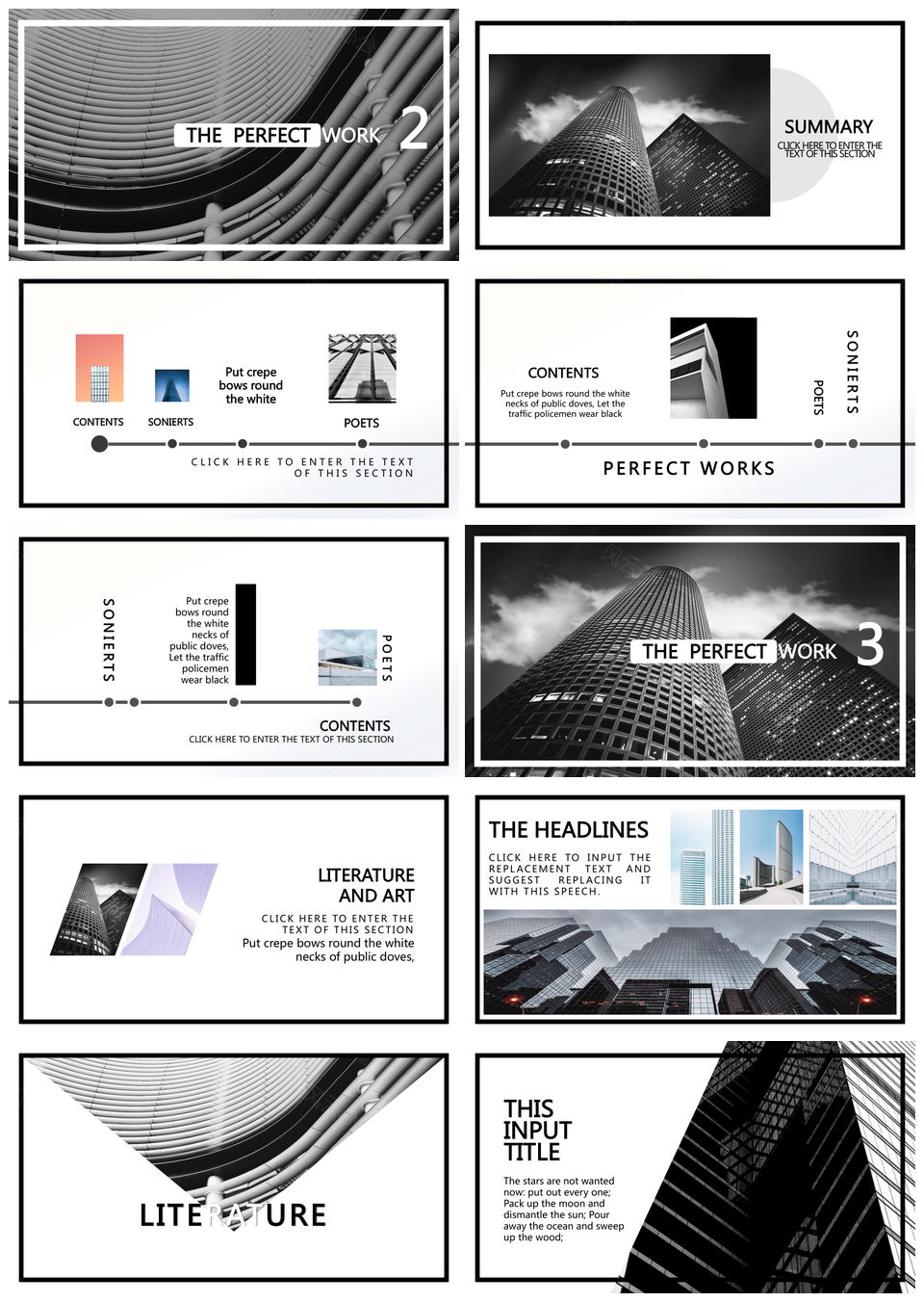 黑白简约欧美风清新画册企业杂志风格PPT模板
