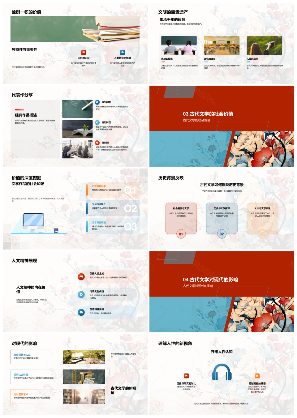 古代文学独特性映今世社会价值承人文遗产PPT模板推荐