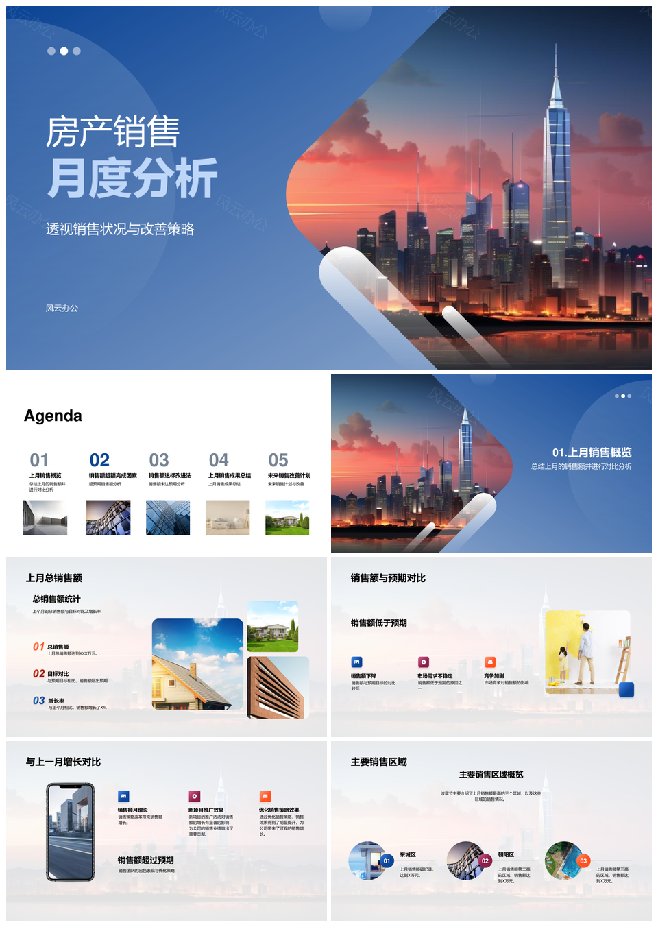 房产销售年度策略资源销售额市场份额竞品产品线摩天大楼PPT模板