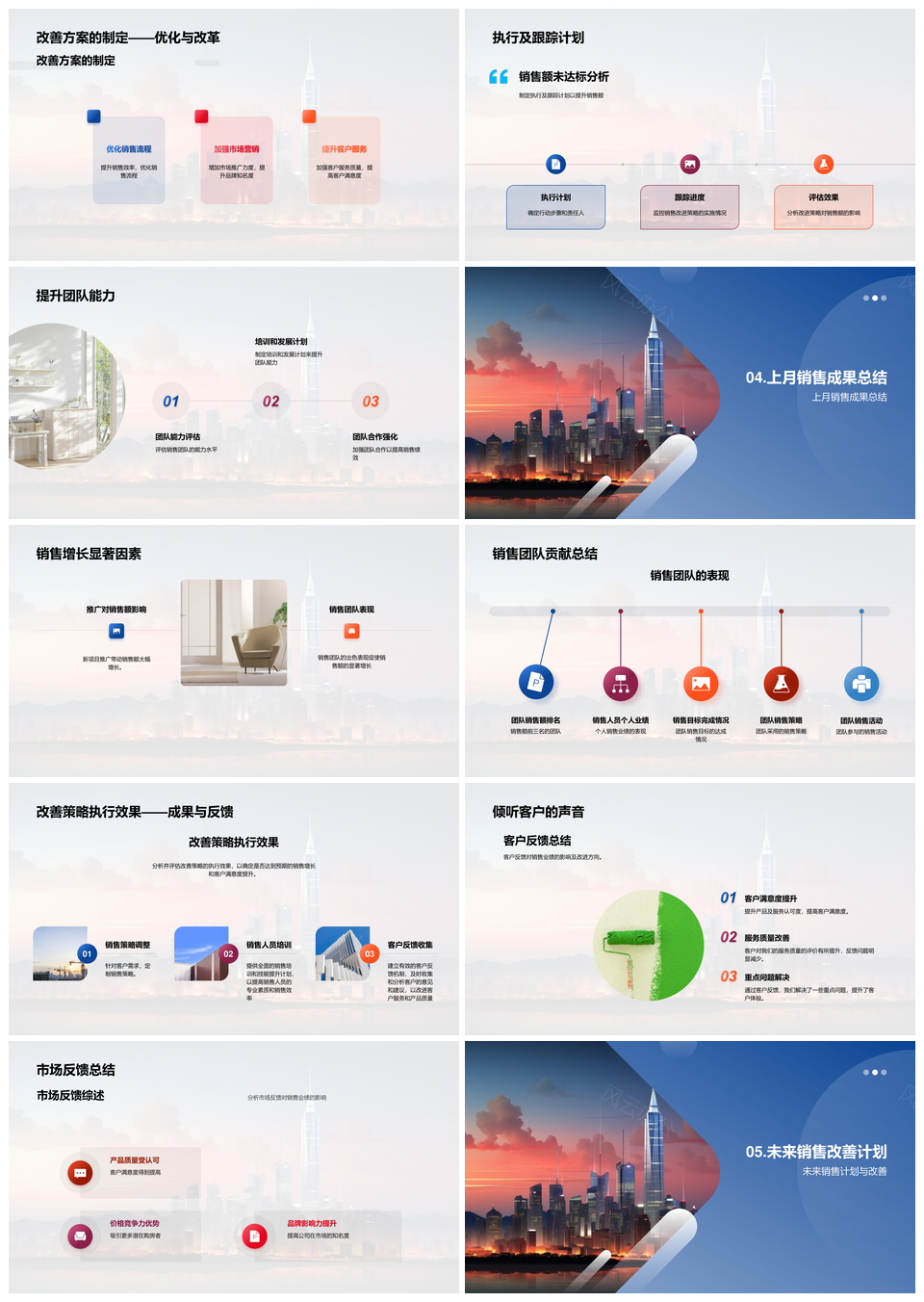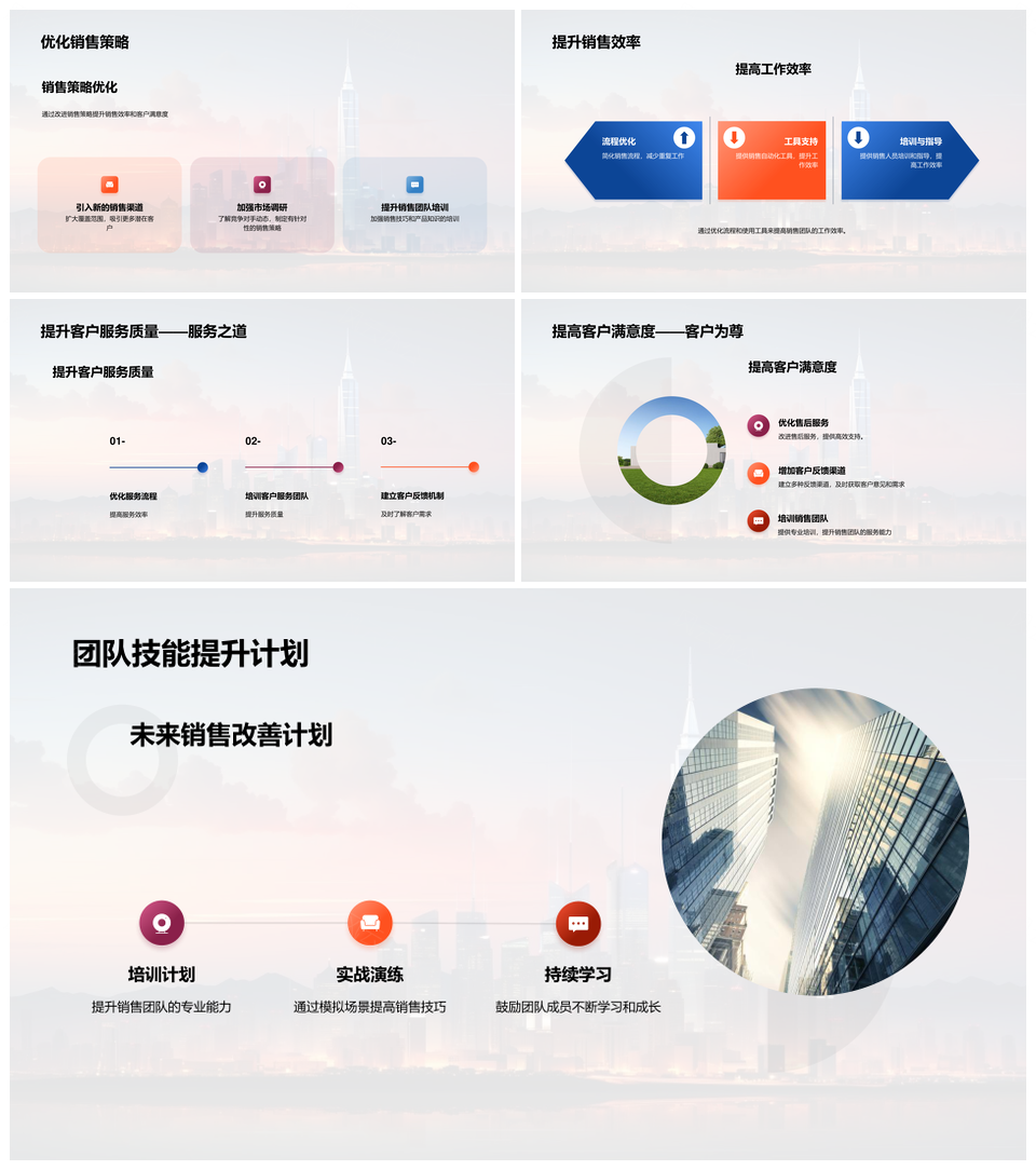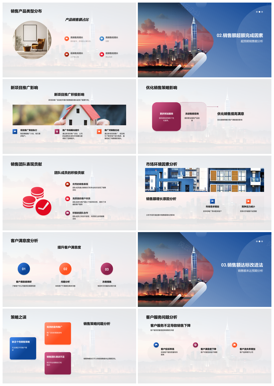 房产销售月析优化策略团队服务摩天大楼新项目PPT模板推荐