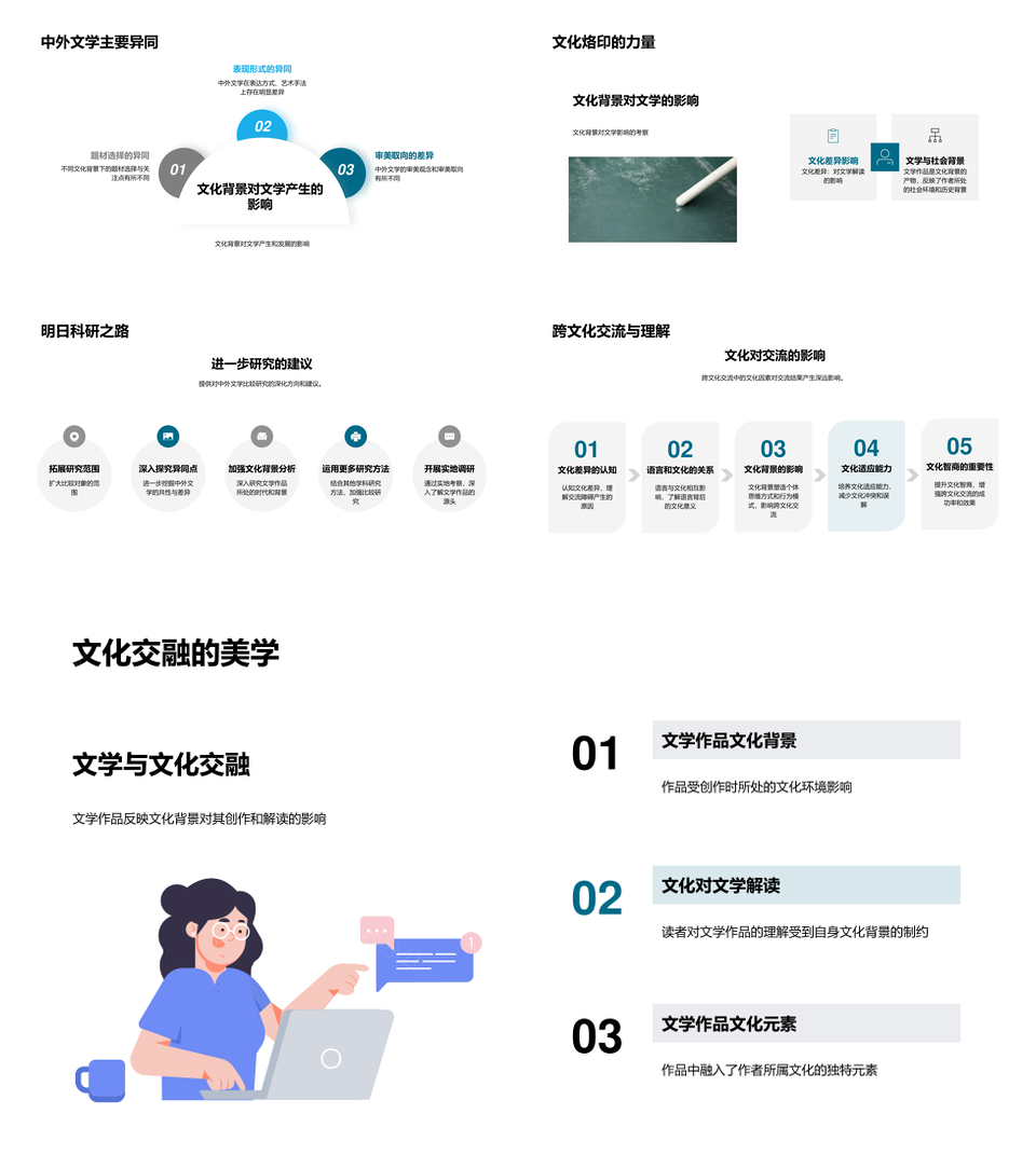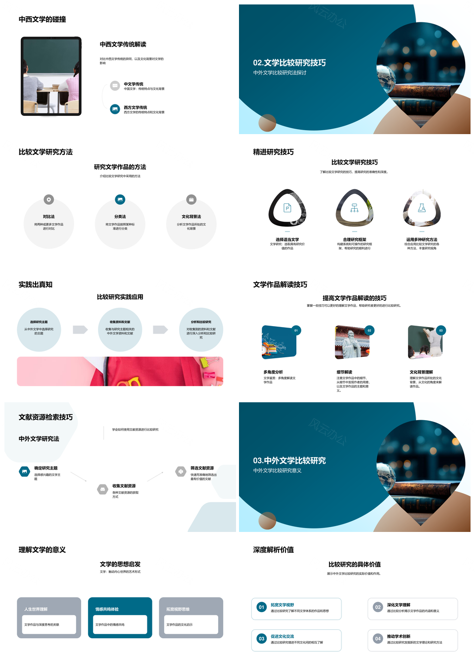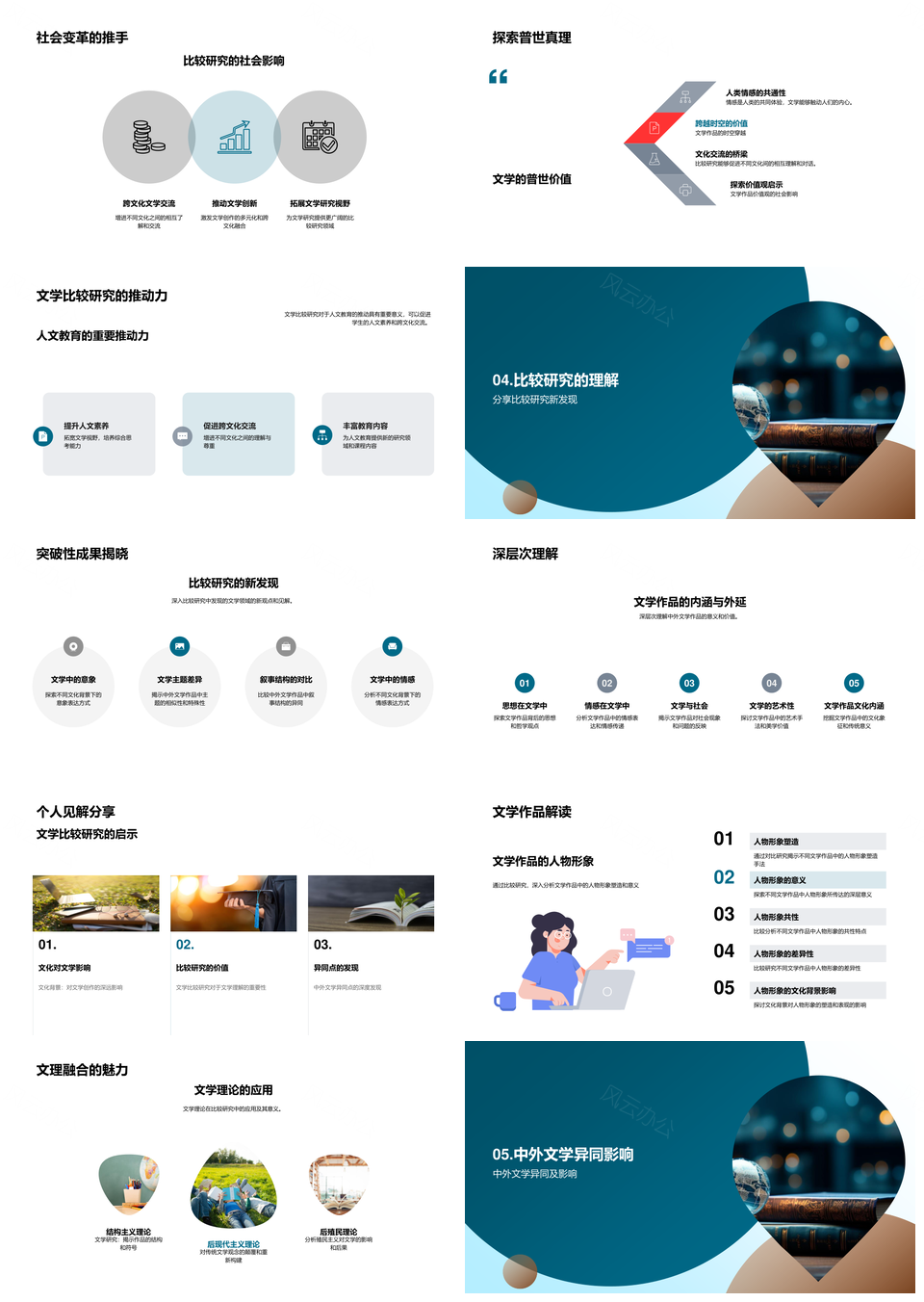 风云办公提供的中外文学比较研究方法与文化影响分析PPT模板,下载格式为pptx,一共33页,作品中文字及图均可以修改和编辑,图片更改请在作品中右键图片并更换,文字修改请直接点击文字进行修改。