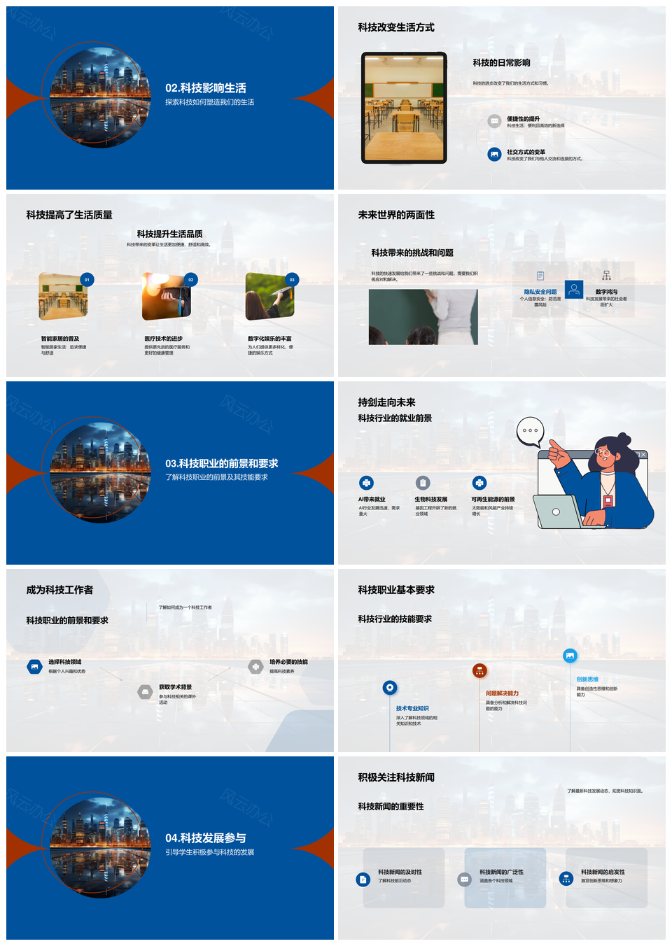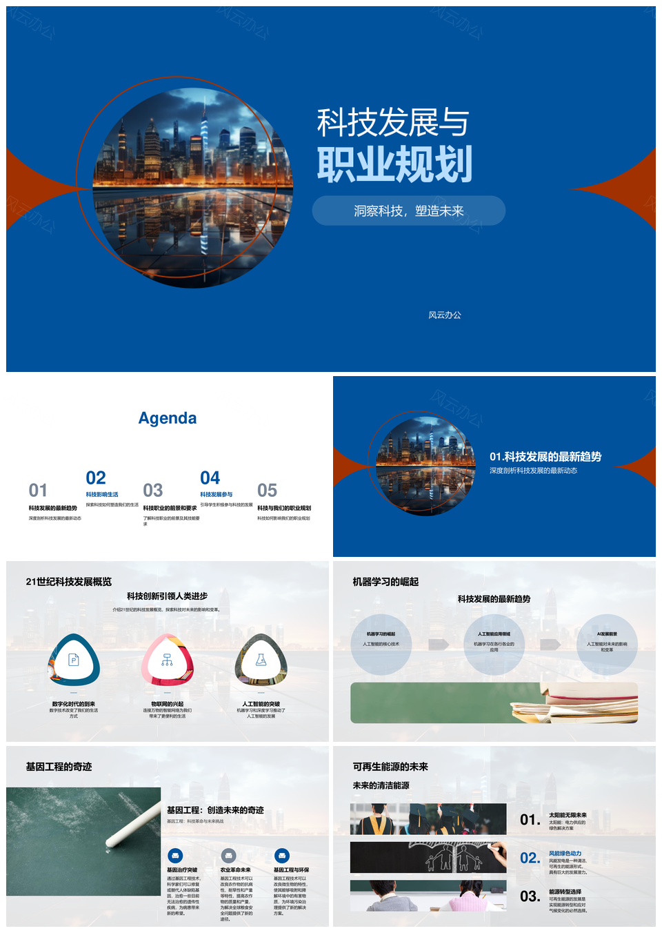 风云办公提供的科技职业规划与未来城市发展革新PPT模板,下载格式为pptx,一共24页,作品中文字及图均可以修改和编辑,图片更改请在作品中右键图片并更换,文字修改请直接点击文字进行修改。