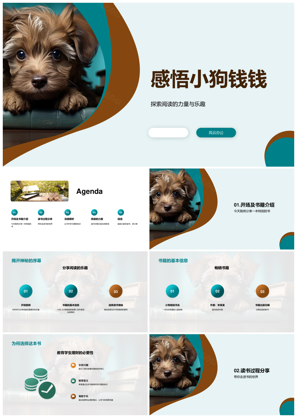 风云办公提供的小狗钱钱阅读乐学理财教育PPT模板,下载格式为pptx,一共21页,作品中文字及图均可以修改和编辑,图片更改请在作品中右键图片并更换,文字修改请直接点击文字进行修改。