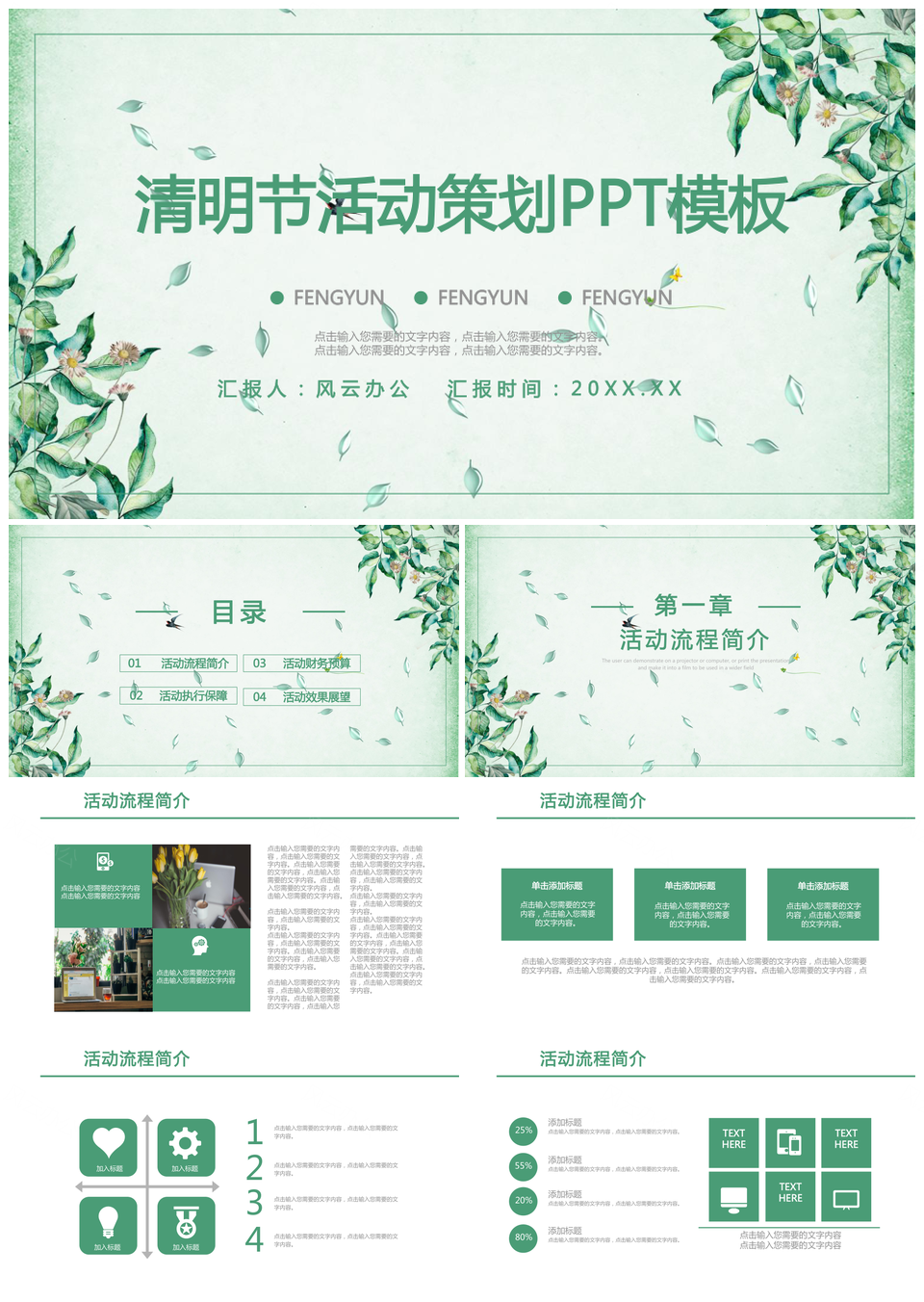 绿色清明节节日活动策划汇报完整框架PPT模板